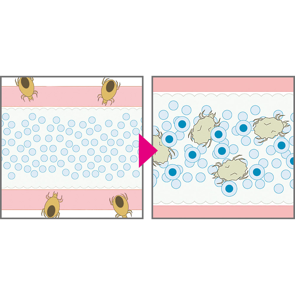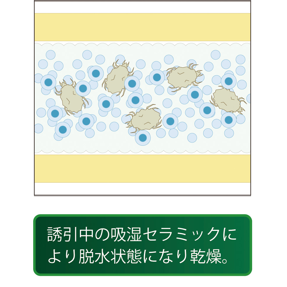 誘引剤を吸収したダニは、製品内部でミイラ化。