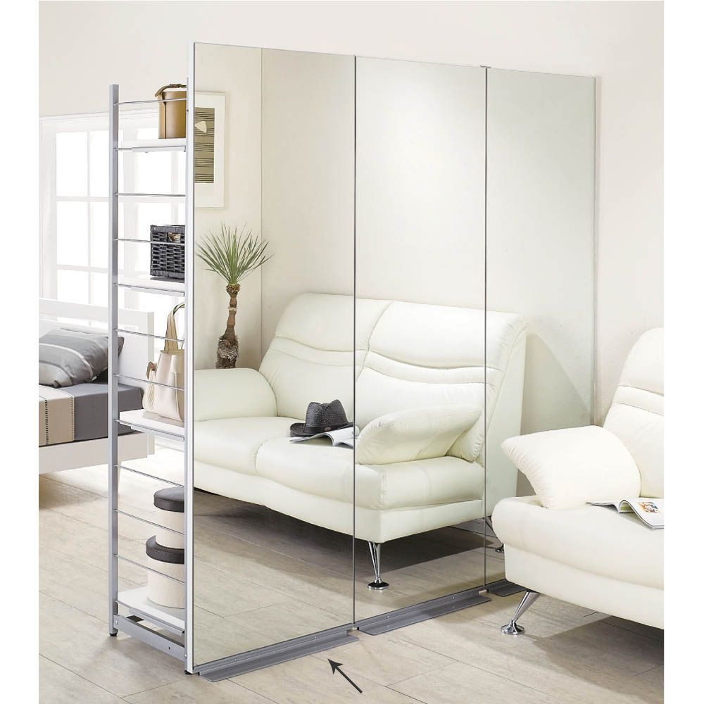 ミラー壁面でお部屋の空間を簡単に仕切ることができるオシャレなハンガーラックです。ミラーの裏面はハンガーラックや収納棚になっています。ミラーは姿見としても使え、さらにお部屋を広く見せる効果もあります。お好みの収納タイプを選んで、空間を仕切りながら自分だけのワードローブが作れます。寝室やリビングルームにも最適!スタイリッシュな間仕切りハンガーラック寝室やリビングルームでも使いやすく、おしゃれに収納スペースを確保します。空間を仕切りながら、目的に応じた最適な収納を提供します。収納ニーズに応えるフレキシブルな設計ハンガーバーと棚板が14cm間隔で可動するので、使う場所や収納物、収納量に応じてお好みで調整できるのが魅力です。季節の変化や新しいアイテムに合わせて、気兼ねなく配置を変えられます。アジャスター付きでどんな場所でもしっかり設置底側にアジャスターを装備しているため、設置する場所を選ばず使用できます。多少の床の不均一にも問題なく対応し、落ち着いた佇まいを保つことができます。あなたのニーズに応える!幅と収納タイプが選べる万能間仕切り収納幅60cmと120cmの2サイズから選べ、ハンガー1段・棚1枚タイプと棚4枚の2つの収納タイプをご用意しています。収納物や使い勝手に応じて、お好みに合わせた最適な組み合わせが可能です。設置場所やライフスタイルに合わせてぴったりフィットします。お部屋のスタイルに合わせて選べる!板タイプとミラータイプの間仕切り板タイプとミラータイプから選べます。空間を手軽に間仕切りたい方にはシンプルな板タイプ。コンパクトなお部屋には空間を広く見せるミラータイプがおすすめです。用途に応じて、板タイプとミラータイプを自由に組み合わせることも可能です。安心の日本製!短時間で組み立て可能な重量感も魅力の収納この収納は日本製の信頼品質。重量約35kgのしっかりとした作りで安定感がありますが、組み立ては大人2名で20分ほどです。忙しい日常でも手軽に設置できるのが特徴です。高い品質と使いやすさが魅力です。