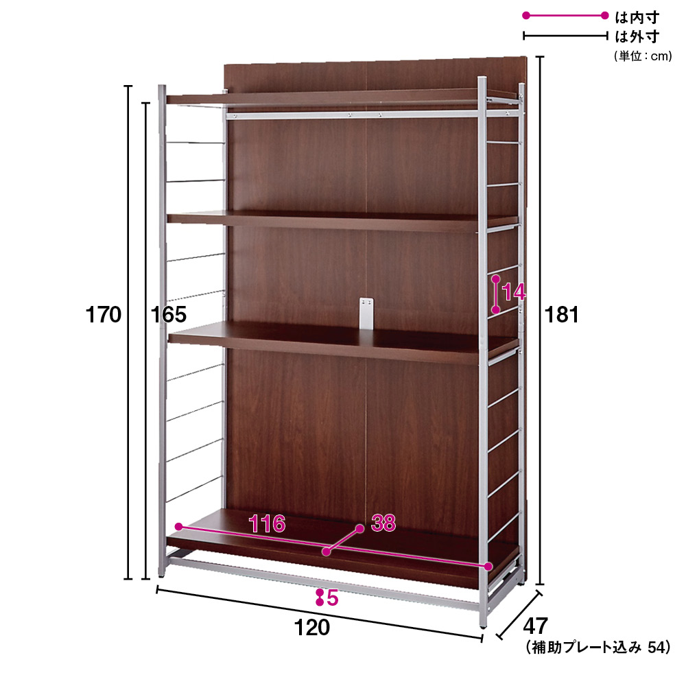 (裏面) ※写真(左)幅60cm棚4枚タイプ、(右)幅120cmハンガー1段棚1枚タイプです。お届けは幅120cm棚4枚タイプとなります。