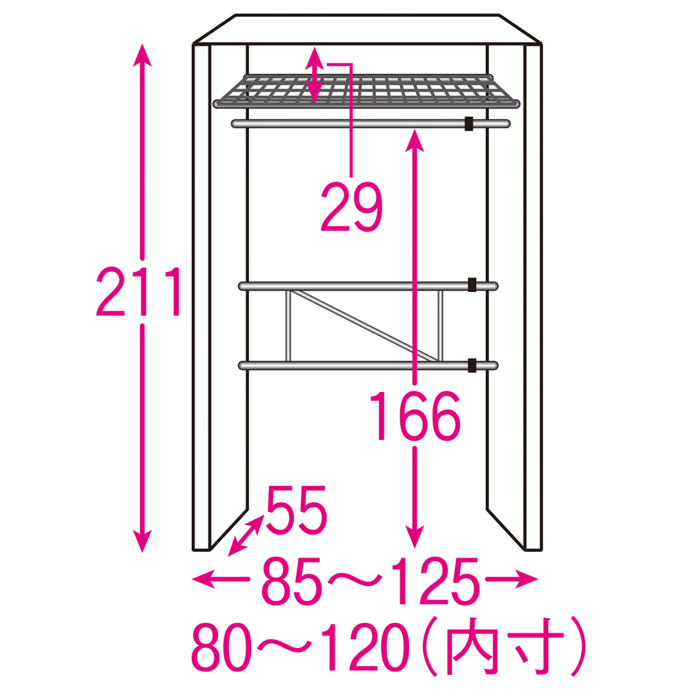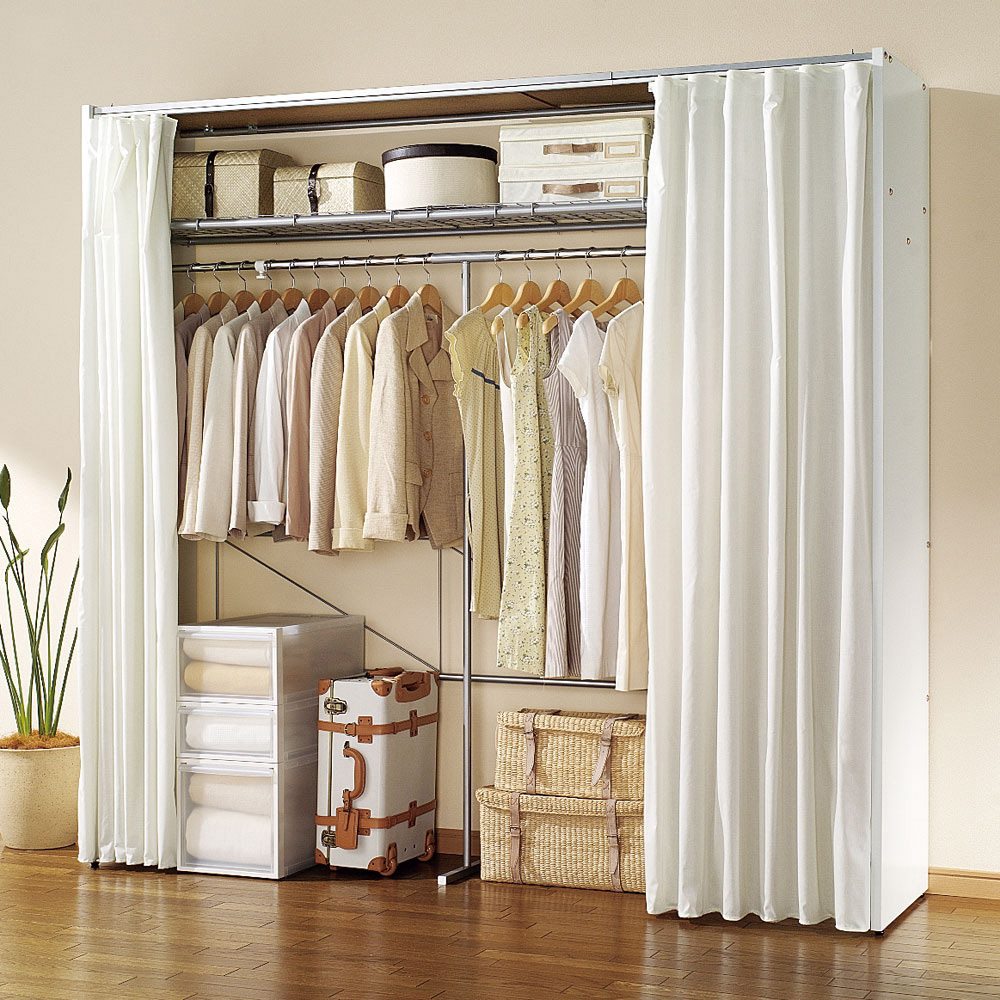 お好みの市販のカーテンに簡単に取り替えできる隠せるクローゼットハンガーです。押入れやワードローブが欲しい方にもおすすめ。幅が伸縮するので設置場所のサイズに合わせて収納が作れます。お部屋の雰囲気やインテリアに合わせて使える収納クローゼット●オープンタイプはごちゃついてしまうのが嫌という方におすすめの隠せる衣類収納です。●サイドパネルが付いているので、空間を間仕切り。横から見てもしっかりと隠せます。●奥行55cmでハンガーを斜めにせずともストレスなく服が掛けられます。お好みのカーテンに簡単に取り替えられます(無地カーテン付き)●一般的なカーテンレールを採用しているので手軽にお好きなカーテンに掛け替えられます。●ラグや窓のカーテンと合わせれば統一感のあるインテリアに。●北欧家具やモダンなど、カーテンを変えれば雰囲気を合わせてお使いいただけます。≪市販カーテンのサイズ目安≫■幅:120cm ■丈:205cm幅が変えられるから設置したい場所にすっきり収まります●幅は85〜125cm、128〜205cm、188〜305cmの3タイプをご用意しました。●既製品でなかなかちょうどいいサイズがないという方へ。●ワードローブが欲しい方にぴったりなクローゼットハンガーです。