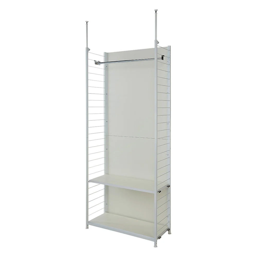 使用イメージ【表:収納面】 ハンガーバーと棚板を組み合わせて充実の衣類収納に。 ※写真は別売りの「棚タイプ・幅60cm」「ハンガー&棚タイプ連結用・幅58cm」「ハンガー2段タイプ連結用・幅58cm」です。 ※写真は天井高さ240cm