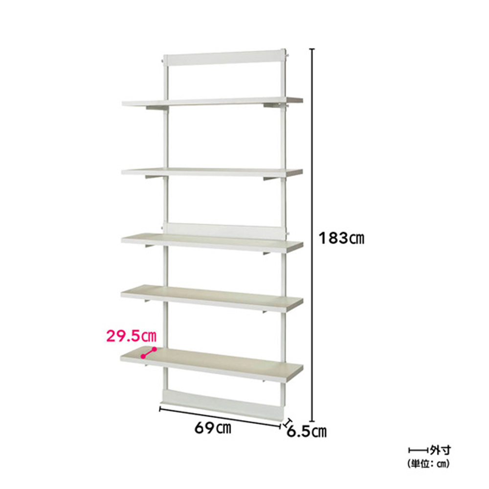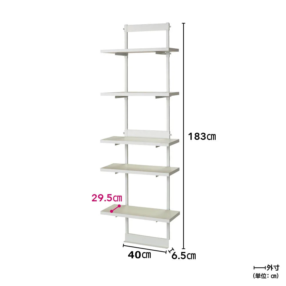 突っ張りづらい場所にも壁付けで簡単設置できるラック。造り付けのように石膏ボードの壁にぴったり取り付けられるから、薄型でも転倒の心配がない安心感が魅力。サイドパネルのないシンプルな造りはまるで造り付けのよう。圧迫感もなく、ディスプレイを引き立てます。ブラック突っ張らないで石膏ボードの壁にピッタリ設置できる「場所を取らずに収納したい」「突っ張り家具は圧迫感があるし、見た目が…」壁ピタシリーズはそんな方のためのお助け収納です。石こうボードの壁に簡単にぴったり取り付けられて、薄型でも安心の安定感。サイドパネルのないすっきりした壁面収納はまるで造り付けのようにディスプレイを引き立てます。写真上段:ホワイト 写真下段:ブラック組立・日本製壁ピタ設置で突っ張らずに置けるディスプレイラックの棚タイプは、幅は60cm、90cmの2タイプ、色はホワイト、ブラックの2色があり、お部屋に合わせてお選びいただけます。完成品でお届けしますので、届いたらすぐお使いいただけます。国内メーカーが丁寧に仕上げました。※写真は別売りのラダーラックタイプです突っ張らないから見た目スッキリ突っ張り式のラックでは天井との間に突っ張り金具が必要となり、どうしても圧迫感のある印象に。突っ張らずに置ける壁ピタシリーズなら、石膏ボードの壁にピッタリ設置する方式なので突っ張り金具もなく、すっきり見えます。※写真は別売りのラダーラックタイプです石膏ボードの壁に付属の固定具でカンタン設置!設置跡が目立ちにくいから安心壁紙の内側が石膏ボード製の壁に専用の針で取り付けられます。お引越しなどで取り外した際も針穴が目立ちにくいので、賃貸のお部屋でも安心です。棚板の高さはつまみで調整可能収納したい物の高さに合わせて、棚の高さはサイドのつまみで無段階に調節でき、好きな位置に棚板位置を決めることができます。写真は別売りのミラータイプです脚部は鉄板プレートで安定感アップ脚部奥行は本体奥行よりも深くし、鉄板プレートを使用することで安定感を高めました。2台並べてもすき間なく設置できます。また、幅木よけ(奥行2×高さ5.5cm)を施しています。ブラック 写真左からラダーラック幅65cmタイプ、ミラー幅60cmタイプ、棚タイプ幅60cm「狭くても狭さを感じさせない」壁ピタシリーズ広さに限りがあるお部屋でも床面積をほとんど占領せずにラダーラックと棚で収納力を確保でき、ラダーの引っ掛け収納もサイドパネルのない棚も、ほどよい抜け感で圧迫感を感じさせません。さらにミラーの視覚効果で、部屋を広く見せる演出もプラスできます。