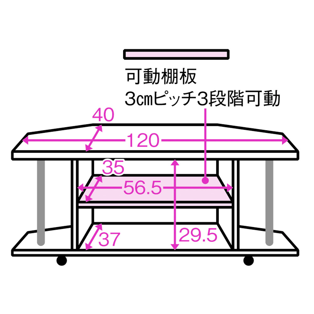 テレビ設置天板の平面図(単位:cm)