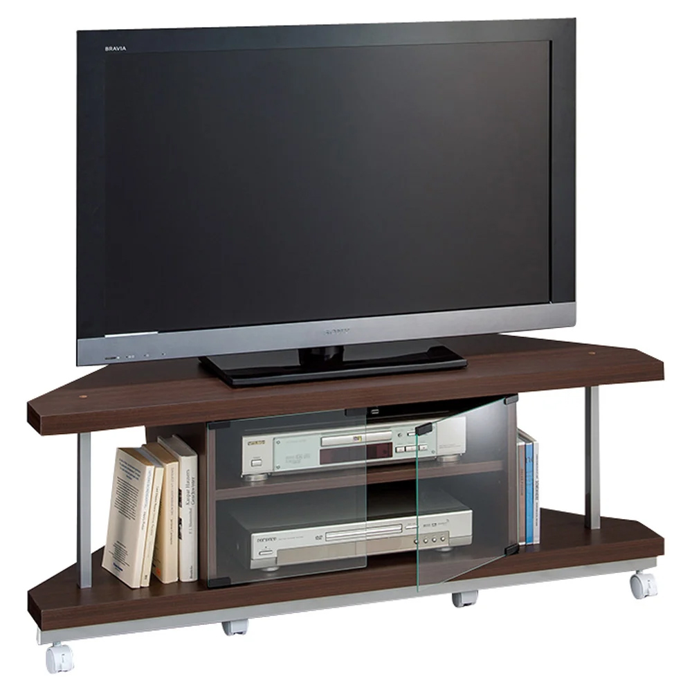 ディスプレイや収納を楽しく!壁面を有効活用できるテレビボード。テレビ上の空間をあなた好みに有効活用。ディスプレイや収納を楽しむ大人気のコーナーテレビボードは、キャスター付きで移動もお掃除もラクラク。テレビ上をおしゃれに有効活用できるオーバーハングボードシリーズ。●テレビが薄型・大型になってもお部屋のコーナーにテレビを置かれる方は多く、コーナーテレビ台は今でも大変人気です。●このシリーズは、別売りの『突っ張り式スペースラック』を合わせてご使用いただくことで、 テレビ台上やリビングボード上の空間スペースに棚収納部を作ることができます。 ディスプレイをしてインテリアをおしゃれに彩りたい方におすすめのシリーズ。●『突っ張り式スペースラック』は突っ張り式で、壁や床に穴を開けることなく固定できることがポイント。 先に設置した突っ張り式ラックに、テレビ台を手前側からセットするだけで簡単に設置できます。●シリーズすべてのテレビ台はキャスター付きなので、設置も移動もラクラク。お掃除の際も移動が簡単です。●新生活にもおすすめのローボードです。コンパクトなコーナーテレビ台、使いやすいおすすめポイント。●テレビ台は幅が120cm。42インチ液晶テレビのテレビ台としておすすめです。●埃を防ぐガラス扉仕様で、プッシュ式開閉となります。 ガラス扉に枠がないタイプなので、デッキのリモコン受光部が枠に隠れてリモコン操作ができない、なんてことがありません。●デッキ収納部には可動棚板1枚付きで、高さ調節が可能です。 背面は背板が外せます。配線接続作業がしやすく、デッキから出る熱を外へ逃がします。●色(棚板×フレーム)は以下の6色からお部屋に合わせて選べます。・(ア)ナチュラル×シルバー・(イ)ホワイト×シルバー・(ウ)ダークブラウン×シルバー・(エ)ホワイト×ホワイト・(オ)ナチュラル×ホワイト・(カ)ダークブラウン×ブラック※別売りの「突っ張り式スペースラック」の天井への突っ張り方法について、動画で詳しく紹介しています。