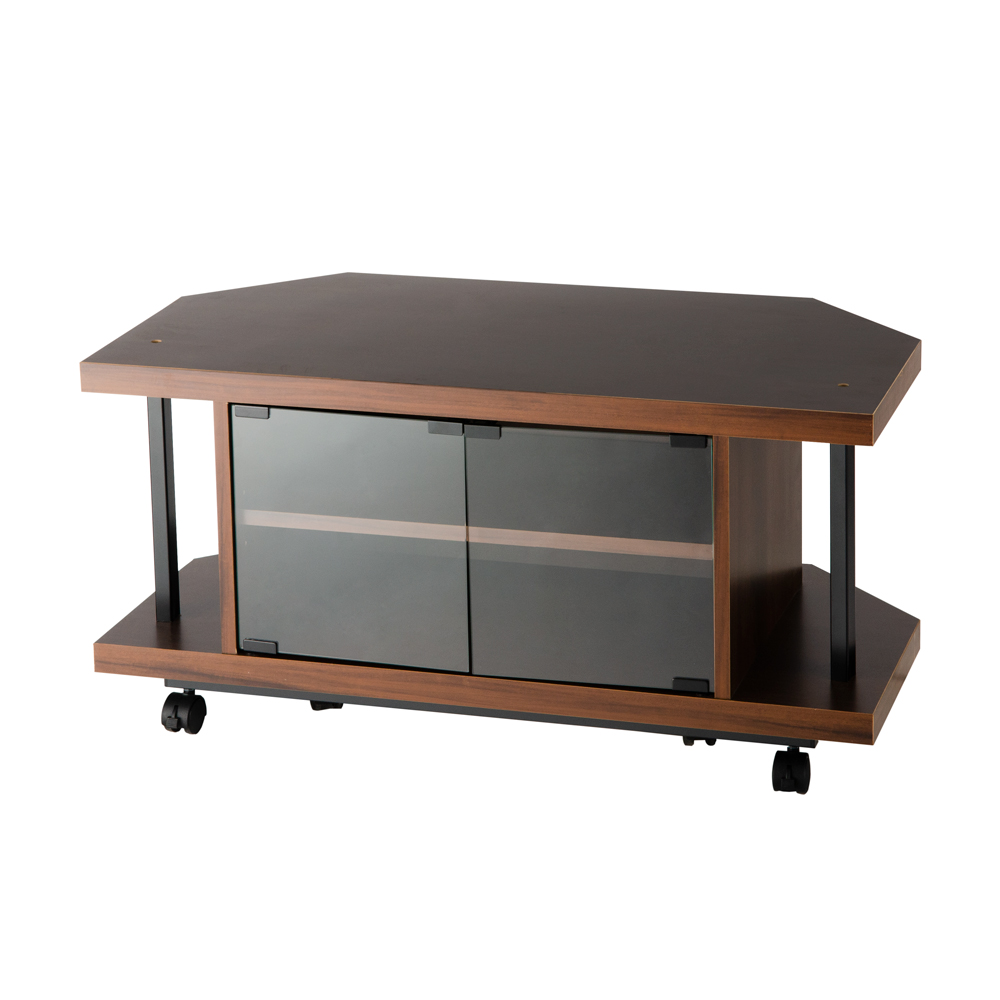 (ウ)ダークブラウン×シルバー ※お届けはコーナー用テレビ台のみとなります。突っ張り式ラックは別売となります。