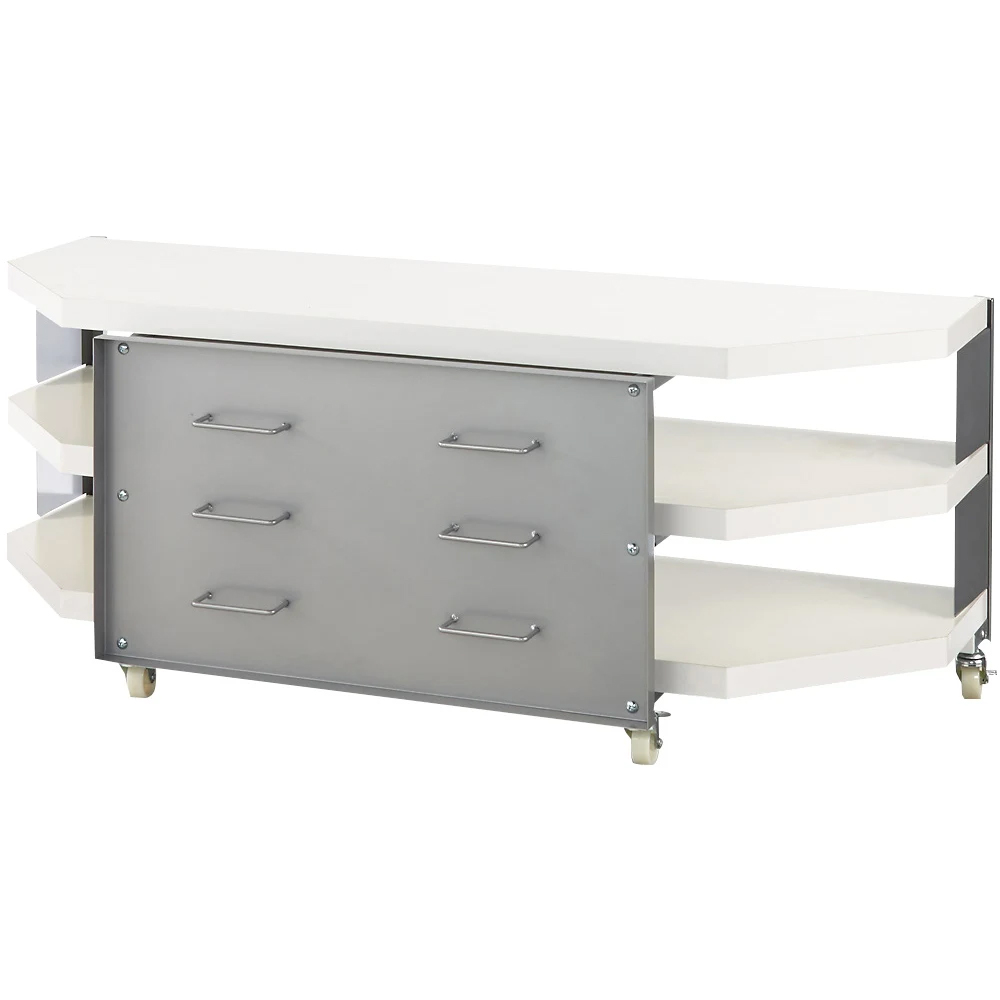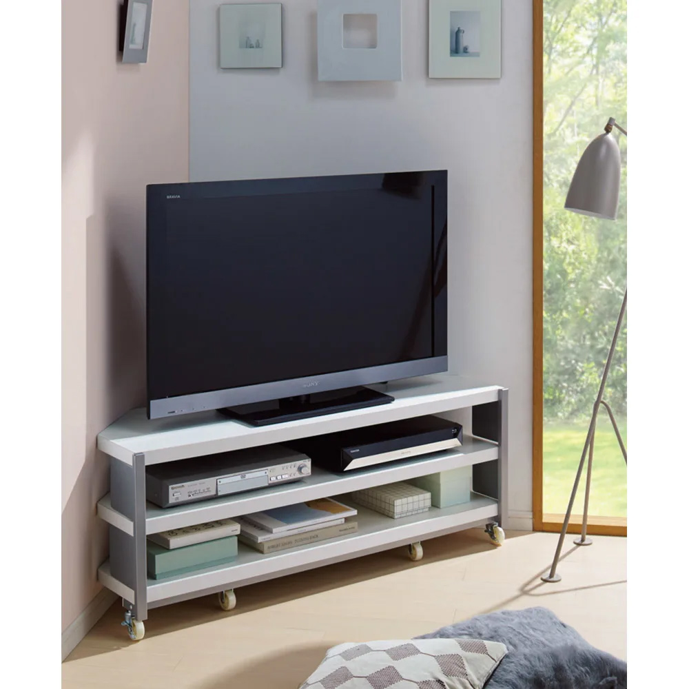 (イ)ホワイト×シルバー ※お届けはコーナー用テレビ台のみとなります。突っ張り式ラックは別売となります。