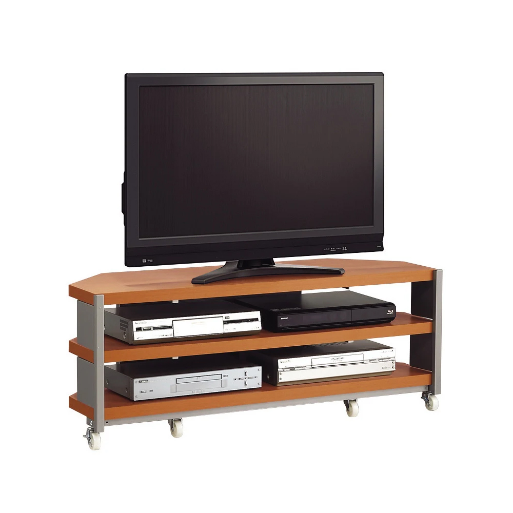 コーナーを有効活用出来るテレビボード。 シンプルなデザインに配線収納をプラス。キャスター付きで移動もお掃除も楽々。AV機器の排熱効果のあるオープンタイプのTV台。テレビ上をおしゃれに有効活用できるオーバーハングボードシリーズ。●テレビが薄型・大型になってもお部屋のコーナーにテレビを置かれる方は多く、コーナーテレビボードは今でも大変人気です。●このシリーズは、別売りの『突っ張り式スペースラック』を合わせてご使用いただくことで、 テレビ台上やリビングボード上の空間スペースに棚収納部を作ることができます。 ディスプレイをしてインテリアをおしゃれに彩りたい方におすすめのシリーズ。●『突っ張り式スペースラック』は突っ張り式で、壁や床に穴を開けることなく固定できることがポイント。 先に設置した突っ張り式ラックに、テレビ台を手前側からセットするだけで簡単に設置できます。●シリーズすべてのテレビ台はキャスター付きなので、設置も移動もラクラク。テレビ台うしろのお掃除の際も移動が簡単です。●新生活にもおすすめのローボードです。コンパクトなコーナーテレビ台、使いやすいおすすめポイント。●テレビ台は幅が120cm。42インチ液晶テレビのテレビ台としておすすめです。●正面はオープンタイプ、扉の開閉なく簡単にデッキ部分の操作ができます。●固定棚板3段タイプで、デッキが2台収納できます。●背面はスチール製のパネルがあります。パネルにはコードを巻きつけられる出っぱりがあり、余分なコードを巻いておけます。●背面もオープン仕様なので、デッキから出る熱を逃がします。●色(棚板×フレーム)は以下の6色からお部屋に合わせて選べます。・(ア)ナチュラル×シルバー・(イ)ホワイト×シルバー・(ウ)ダークブラウン×シルバー・(エ)ホワイト×ホワイト・(オ)ナチュラル×ホワイト・(カ)ダークブラウン×ブラック※別売りの「突っ張り式スペースラック」の天井への突っ張り方法について、動画で詳しく紹介しています。
