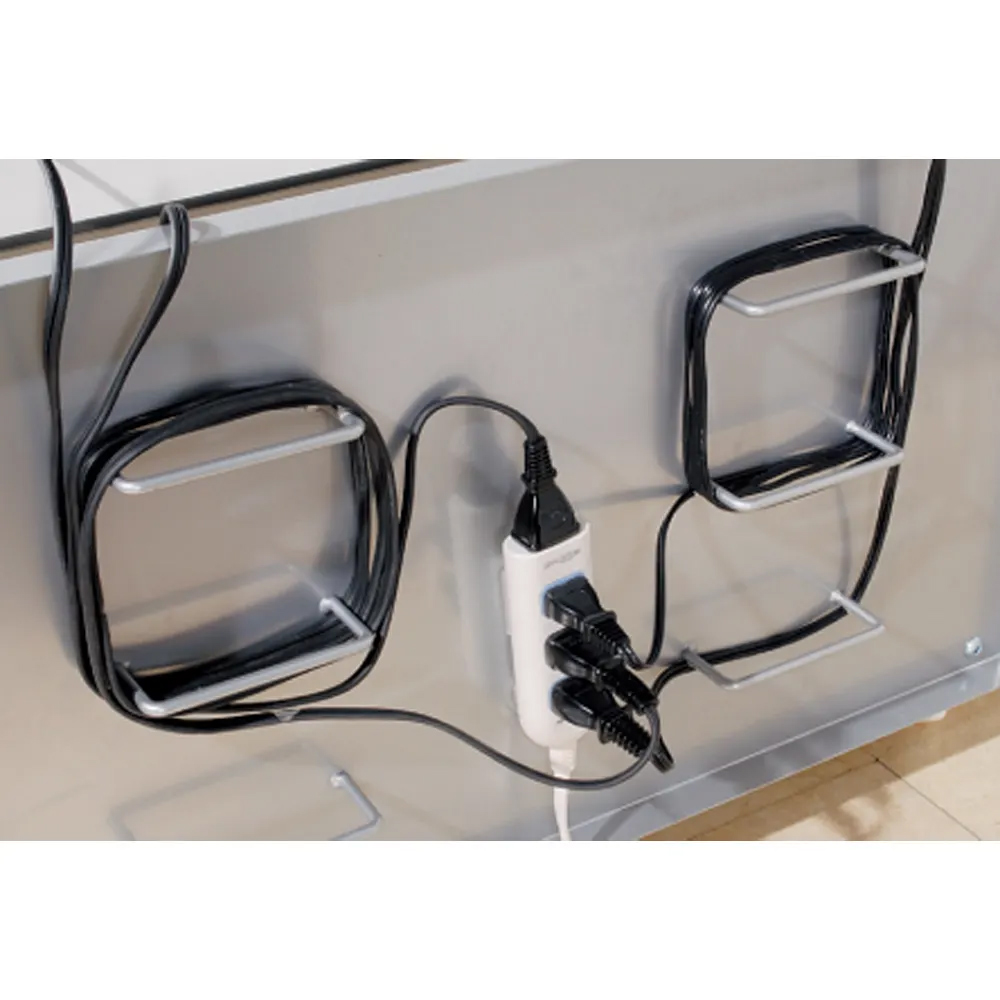 背面でコードを巻き取れます。背板はスチール製でマグネット式電源タップの貼り付けが可能。