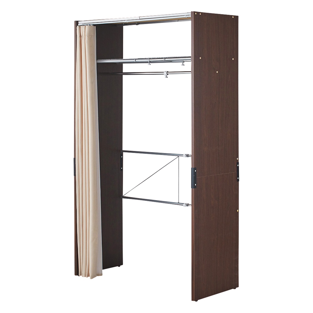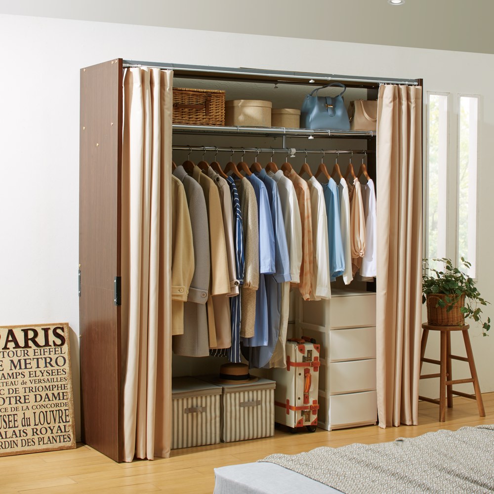 モダンなインテリアにマッチする大量収納ワードローブ。シックな色合いが上質な衣類収納ハンガー。幅伸縮機能でお部屋にぴったり。収納棚と頑丈ハンガーで効率的に収納します。ブティックのような高級感のある伸縮クローゼット。洗練された雰囲気を演出します。●全体が落ち着いた色合いの家具なのでどんなインテリアにもマッチします。●ウォークインクローゼットや寝室を洗練された衣類収納に変えます。●側板にはダークブラン色を採用し、モダンな雰囲気を演出。●カーテンの色はダークグレーとベージュの2色をご用意。●クールでシャープな印象のダークグレーと温かみのあるベージュ。お部屋に合わせてお選びください。●カーテンは好みに応じて市販のカーテンに取り換えることも可能です。本体の幅が空間に合わせて伸縮するので設置したい場所にぴったり収まります●収納量やスペースに合わせて幅を伸縮出来る便利仕様。●幅85〜125・幅128〜205・幅188〜305の3サイズをご用意。●幅伸縮は通常のワードローブにない機能ですので、様々な設置場所におすすめです。●開閉も省スペースなので、ベッド前などスペースのないところでも設置可能です。バッグ収納や収納ケースに便利な棚(ラック)付き。ウォークインクローゼット替わりにも。●すべてのタイプが棚付きでバッグ収納や収納ボックスなどの置き場所に便利です。●収納場所に困る季節家電やトランク等の収納も可能。●カーテンをさっと閉めれば、目隠しすることが可能です。大人の女性をコンセプトにした収納クローゼットです●フィッティングルームやドレッシングルームなどをイメージし、意識を高めるデザインに仕上げました。●センスよくライフスタイルを送りたい。思わずドレスアップしたくなるクローゼットはいかがでしょうか。