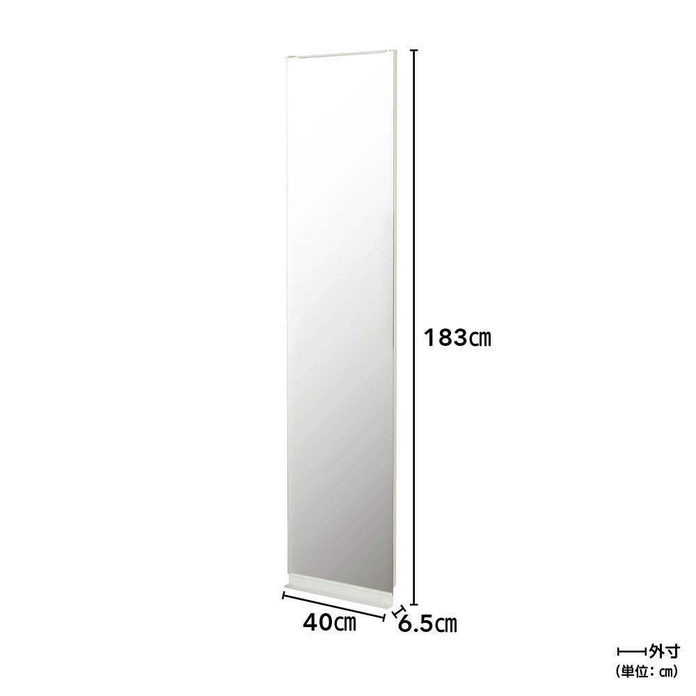 造り付けのように石膏ボードの壁にぴったり取り付けられる、お手軽で安心設置の薄型ミラー。立て掛けるタイプと異なり奥行を取らないので、スペースにゆとりがないお部屋や洗面所、廊下などにもおすすめです。ホワイト突っ張らないで石膏ボードの壁にピッタリ設置できる部屋に大きなミラーが欲しい、でも立て掛けタイプは場所を取るし転倒も心配。そんな方のためのお助けミラーです。石こうボードの壁に簡単にぴったり取り付けられて、薄型でも安心の安定感。垂直に設置するので歪みなく鏡に姿を映せて、毎日の身支度やおうちヨガがいっそう楽しくなります。写真上段:ホワイト 写真下段:ブラック組立不要・日本製壁ピタ設置で突っ張らずに置けるディスプレイラックのミラータイプは、幅は40cm、60cm、80cmの3タイプ、色はホワイト、ブラックの2色があり、お部屋に合わせてお選びいただけます。完成品でお届けしますので、届いたらすぐお使いいただけます。国内メーカーが丁寧に仕上げました。※写真は別売りのラダーラックタイプです突っ張らないから見た目スッキリ突っ張り式のラックでは天井との間に突っ張り金具が必要となり、どうしても圧迫感のある印象に。突っ張らずに置ける壁ピタシリーズなら、石膏ボードの壁にピッタリ設置する方式なので突っ張り金具もなく、すっきり見えます。※写真は別売りのラダーラックタイプです石膏ボードの壁に付属の固定具でカンタン設置!設置跡が目立ちにくいから安心壁紙の内側が石膏ボード製の壁に専用の針で取り付けられます。お引越しなどで取り外した際も針穴が目立ちにくいので、賃貸のお部屋でも安心です。写真は別売りのミラータイプです脚部は鉄板プレートで安定感アップ脚部奥行は本体奥行よりも深くし、鉄板プレートを使用することで安定感を高めました。2台並べてもすき間なく設置できます。また、幅木よけ(奥行2×高さ5.5cm)を施しています。ブラック 写真左からラダーラック幅65cmタイプ、ミラー幅60cmタイプ、棚タイプ幅60cm「狭くても狭さを感じさせない」壁ピタシリーズ広さに限りがあるお部屋でも、床面積をほとんど占領せずにラダーラックと棚で収納力を確保でき、ラダーの引っ掛け収納もサイドパネルのない棚も、ほどよい抜け感で圧迫感を感じさせません。さらにミラーがあれば、部屋を広く見せる効果もプラスできます。ホワイト 写真左からミラー幅40cmタイプ、ラダーラック幅65cmタイプ限られた空間の玄関も広々と靴だけではなく傘やコートなど雑多なものの収納が求められる玄関では、壁ピタシリーズの場所を取らない収納が最適。圧迫感がなく、お子さまから大人まで誰にでも自分仕様に使いやすいシンプルな構造です。空間を実際よりも広く見せるミラーの効果は、玄関のような狭い場所でこそ大きなメリットに。