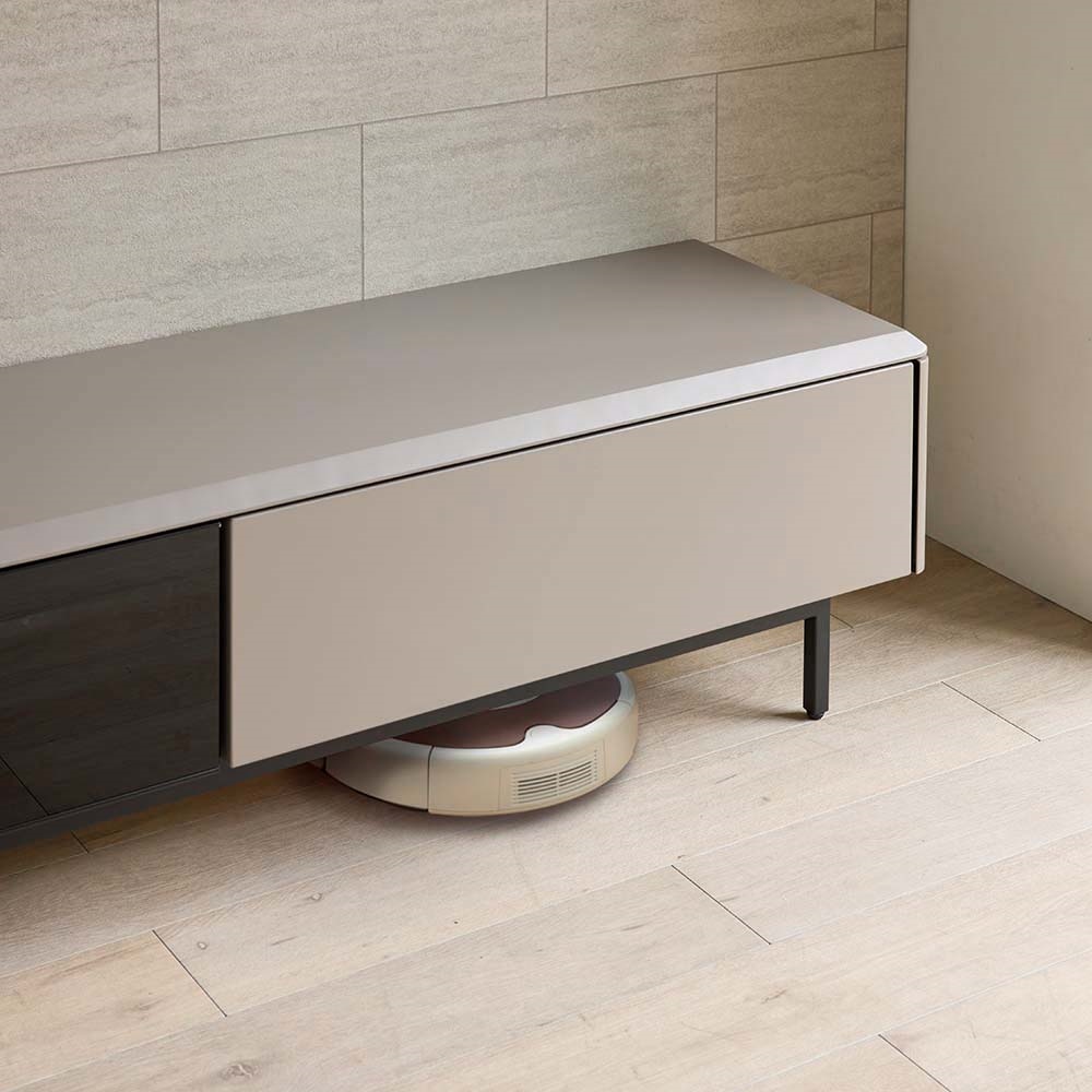 モデルルームのような美しい空間に格上げする上品なカラーとシルエット。収納内部の配線にもこだわった機能的なテレビ台・サイドボードシリーズです。モデルルームのような美しい空間に格上げする トレンドのニュアンスカラーで仕上げたサイドボードシリーズ■幅120cm/150cmの収納量豊富なサイズ展開。 リビング周りで足りない収納場所の確保に活躍します。■ペールトーンの色調や、スチール脚など ワイドサイズでありながら軽やかなデザインを楽しめます。■耐荷重約60kgの頑丈な天板なので、 ハイタイプのテレビ台としても活躍します。洗練されたリビングに品良く馴染むカラーリング 上品で落ち着きのあるマットな仕上げ。「ベージュ」と「グレーベージュ」の2色をご用意しました。■ナチュラルや北欧風のお部屋にも馴染む「ベージュ」■ダークブラウン、ブラック貴重のシックなお部屋にも スタイリッシュに馴染む「グレーベージュ」 スチール製の脚はマットな質感のブラック塗装仕上げ。線の細いデザインですっきりとした印象を与えます。ロボット掃除機が通ることを想定した高さ12cmでお部屋を清潔に保てます。使いやすい機能が満載■各扉収納部の下部には配線穴が付いているので、家電類も収められます。■天板には配線用スリット入り。ストレスなく配線ができます。■背面下部には電源タップ収納が付いているので、配線を綺麗に集約出来ます。■角が丸く加工されているので、小さなお子さんのいる家庭でも安心してお使いいただけます。