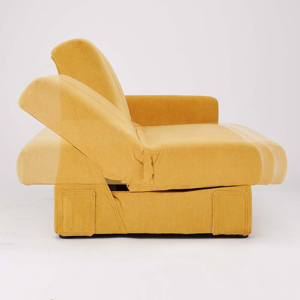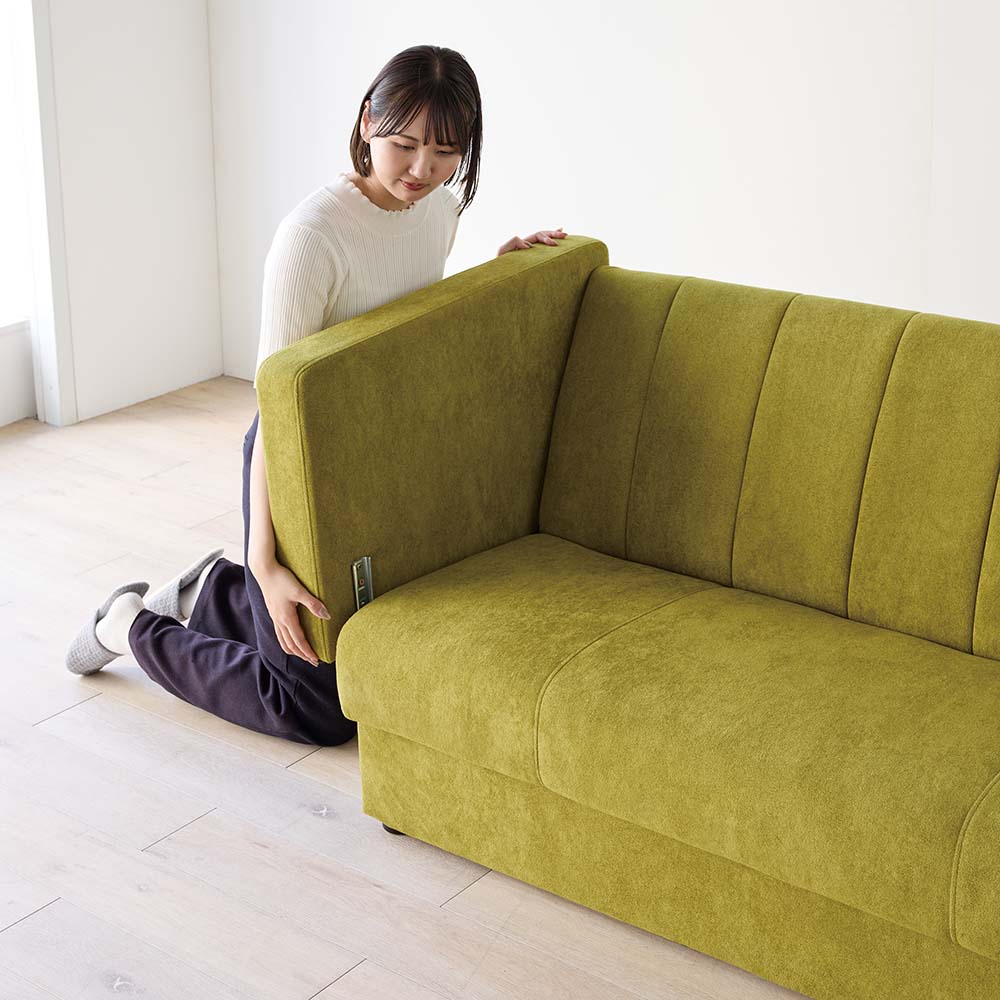 座面を持ち上げ、背もたれを倒すだけのカンタン操作でソファからベッドに。