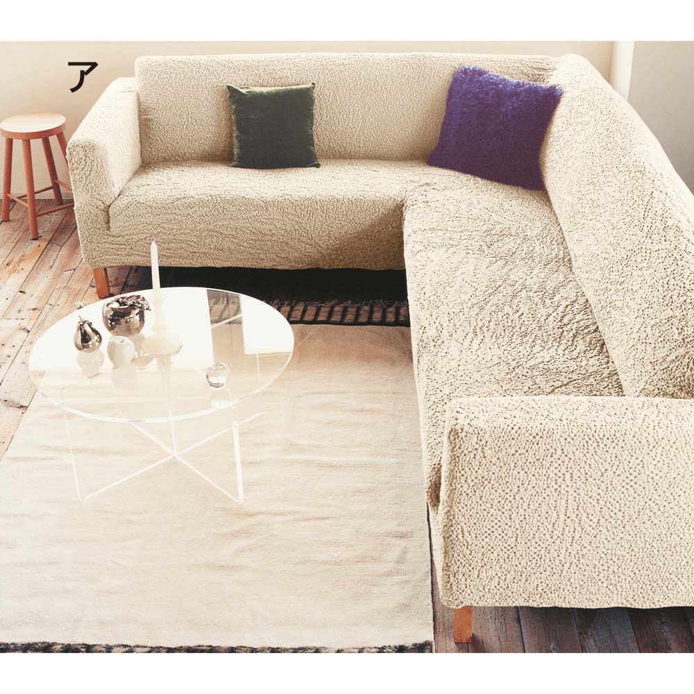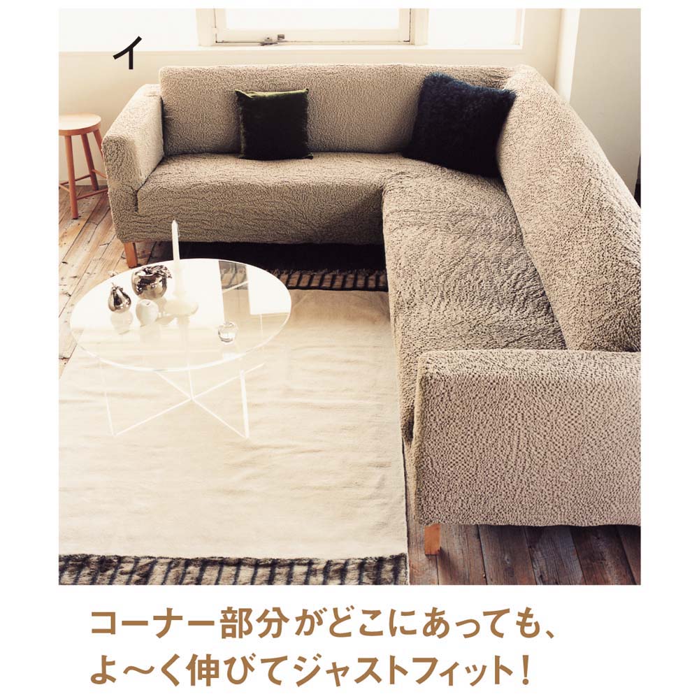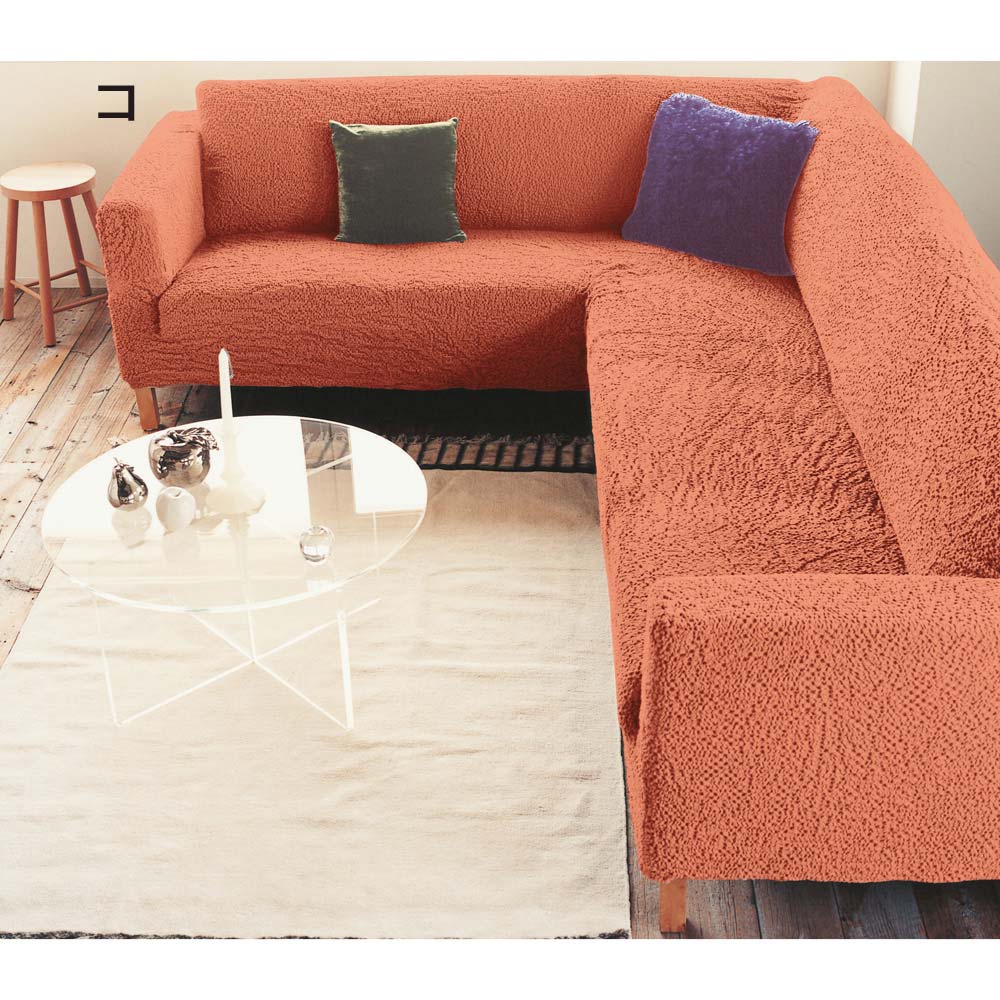 ◆ディノスで長年愛され続けている人気のソファカバー◆どんなタイプのソファにもぴたっとフィット!まさにオーダーメイド感覚。タテヨコに伸縮するクシュクシュッとした風合いの生地は、フィット感に優れ、いろいろなソファに対応します。約1cm間隔の凹凸生地でサラッとした柔かな素材感。おしゃれな色はイタリアならでは。ソフトな風合いのブックレふんわりソフトな風合いで長年愛され続けているブックレシリーズ。生地はクシュっと柔らかくオールシーズン使える素材です。自慢のイタリア製ディノスのソファカバーは、ソファメーカーが数多く存在するヨーロッパの中でも、イタリアのメーカーが生地生産から縫製まですべての工程を手掛けるため、クオリティの高さが自慢です。また、海外製ならではの鮮やかなカラー&サイズ展開の充実も魅力的。掛けるだけでまるで新品長年愛用してきた大切なソファが痛んできた・・そんなときにこのフィットカバーを掛けるだけで大切なお手持ちのソファがまるで新品のように生まれ変わります。ソファにカバーをかけて余った布を隙間に押し込むだけで装着完了!お部屋の中でも面積の大きいソファ。だからこそフィットカバーを替えるだけで、印象が変わり、手軽にプチリフォーム気分が味わえます。さまざまな形状にピッタリフィットお使いのソファにかぶせ、すき間に布を押し込めば出来上がり!簡単らくらく取り付けで、ソファの張地のようにぴたっとキレイにフィットし仕上がりもきれい。豊富なサイズ展開も自慢です。素肌にうれしい綿混素材優れた伸縮性はもちろん、素肌にもうれしい柔らかな綿混素材も人気のポイント。凹凸感がニュアンスのある表情も魅力的。気分に合わせてお部屋の印象をガラリとチェンジ豊富なカラー展開を備えているので気分に合わせてお好きなカラーを選んでいただけます。気軽にお部屋の印象を変えることが出来るのもソファカバーならではの魅力です。ご自宅で丸洗いOKなのがうれしい万が一ソファを汚してしまっても、さっとカバーを外してご自宅で丸洗いできるのが頼もしい!いつでも清潔な状態で気持ちよくお使いいただけます。ちいさなお子様やペットがいるご家庭にも。