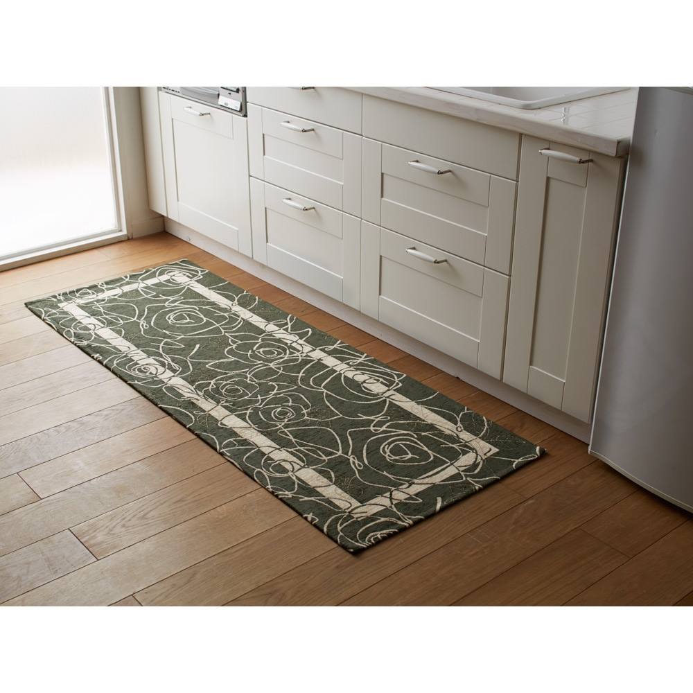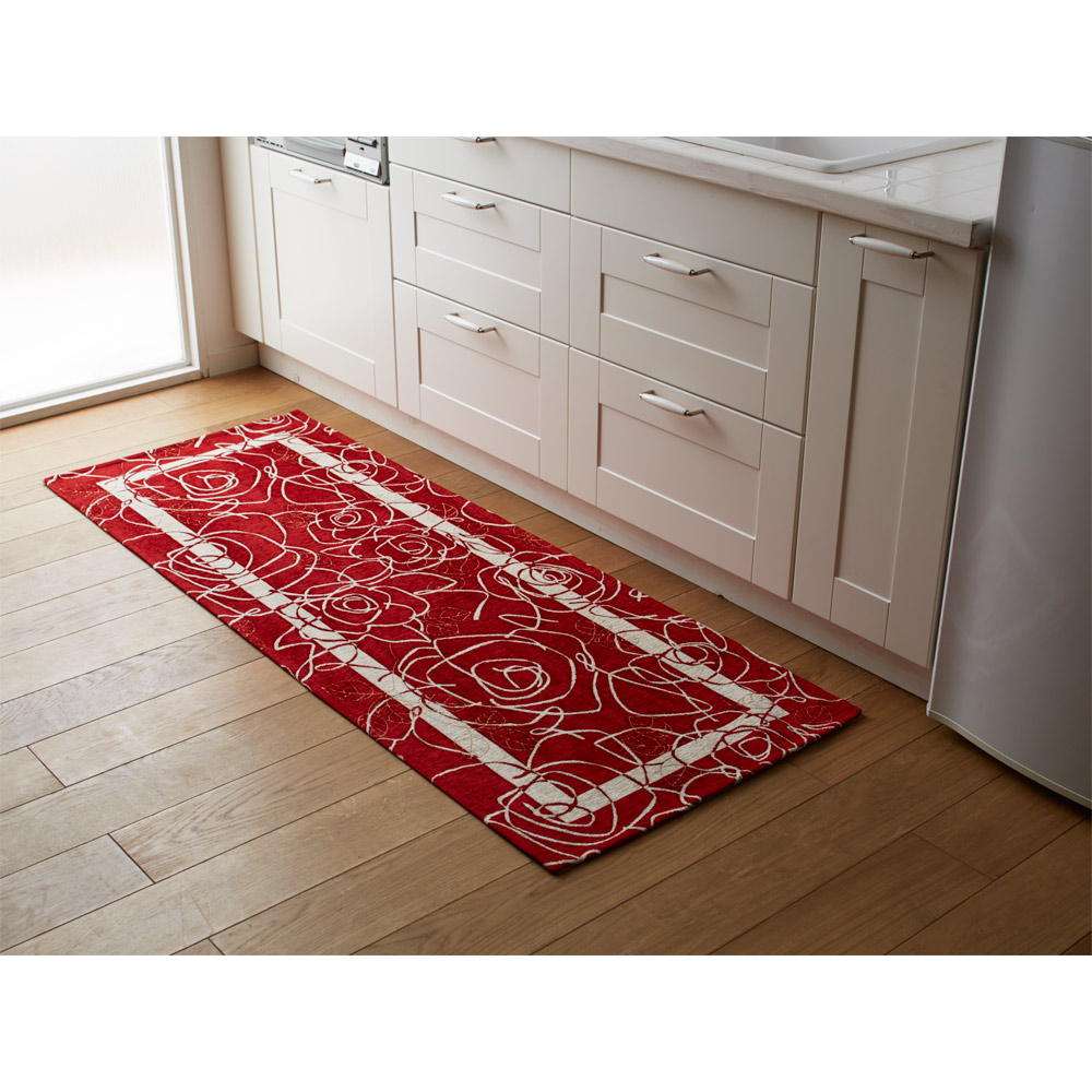 カメリアモチーフを大胆にデザインした、イタリア製マット。シェニール糸を贅沢に使ったゴブラン織は、程よい厚みでふんわり柔らか。ご家庭の洗濯機で洗えてお手入れも簡単です。多サイズ・多カラー展開も魅力の人気商品です。ラグジュアリーなカメリアモチーフを大胆にデザインした、イタリア製のゴブランラグ。シェニール糸を贅沢に使ったゴブラン織は、程よい厚みでふんわり柔らか。汚れても、ご家庭で洗えるのもポイント。多サイズ展開・多カラー展開でご用意しました。ゴブラン織りとは織物の一種。絵模様を織り出したヨーロッパの「綴れ織り(つづれおり)」のことで、多色の糸を使用できるため、タペストリーのような繊細な表現ができる織物の一般名称になっています。名前の成り立ちは、15世紀にゴブラン一家がパリで作った染色工場の場所に、17世紀にタペストリーの国立工房が作られ発展したことにゴブランの名の由来があります。ゴブラン織りの特長ゴブラン織りは織物のため比較的薄手で、段差ができにくく、ドアの開閉にも邪魔になりにくいので、いろいろなお部屋に使えます。