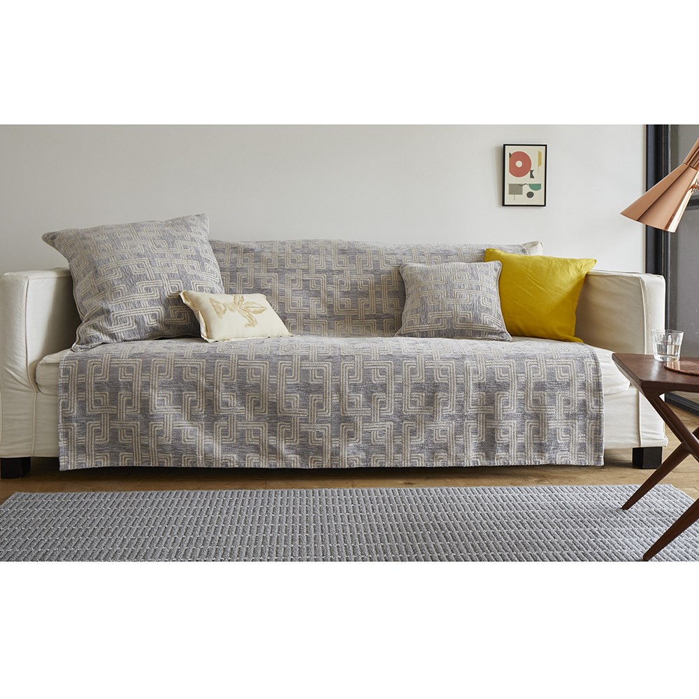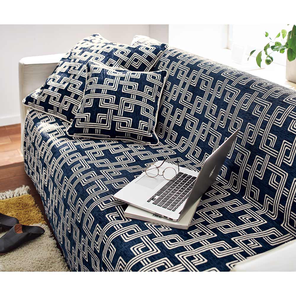どんなテイストにも調和するモダンな幾何学柄。ソファカバーに、ラグに、いろいろ使える、イタリア製のマルチカバーです。モール状のシェニール糸と綿混の糸で織りあげ、やわらかい手触りです。ソファカバーにも、ラグにもマットとしても。マルチな厚手のジャガード織カバーイタリアンモダンな幾何学柄で、光沢のあるシェニール糸をふんだんに使用したしっかり厚手のマルチカバーです。裏面はソファや床とのズレを防ぐ、滑りにくい加工を施しています。ふっくらとしたジャガード織素材上品な光沢とふっくら毛羽のあるモール状のシェニール糸で織りあげた、ジャガード織り素材が魅力を引き立てます。敷いてもズレにくく、快適裏面に滑りにくい加工を施しているので使用するたびにズレてくる不快感が少なく快適。ご自宅で丸洗いOKなのがうれしい汚してしまっても、ご自宅で丸洗いできるのが頼もしい!いつでも清潔な状態で気持ちよくお使いいただけます。【滑りにくい加工について】裏面にすべりにくくするための加工が施されておりますが、使用期間や裏面と接する床面の状態により、効果は一定ではありません。状況により市販の滑り止めとの併用をお勧めします。【ドラム式洗濯機使用不可理由】ドラム式洗濯機の構造上、片寄りが発生しエラーや故障の原因になる可能性があるため、ドラム式洗濯機で洗うことはできません。