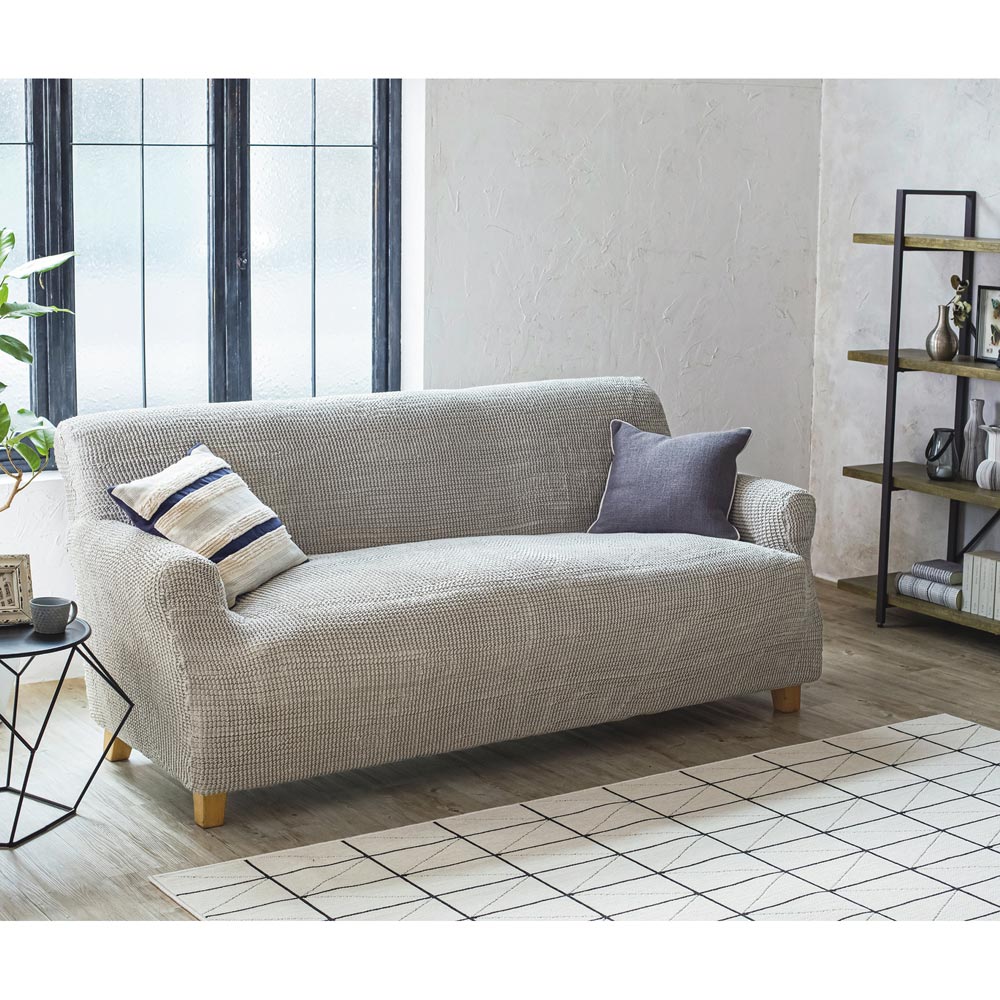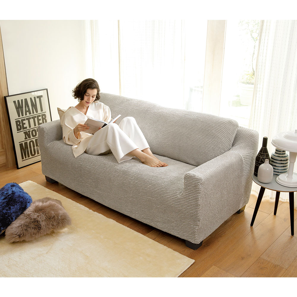 ◆満足度大のスーパーストレッチソファカバー◆驚くほどよく伸びて着脱らくらくの進化したフィット感!スペイン製ならではの豊富な美発色カラーも魅力的です。伸縮性に優れたスーパーストレッチ素材のビスタ驚くほどよく伸びて伸縮性に優れているのがビスタの特徴。新開発のスーパーストレッチ素材を採用しておりタテヨコにぐ〜んと伸びるため、様々なソファにフィット。着脱もらくらくです。掛けるだけでまるで新品長年愛用してきた大切なソファが痛んできた…そんなときにこのフィットカバーを掛けるだけで大切なお手持ちのソファがまるで新品のように生まれ変わります。ソファにカバーをかけて余った布を隙間に押し込むだけで装着完了!お部屋の中でも面積の大きいソファ。だからこそフィットカバーを替えるだけで、印象が変わり、手軽にプチリフォーム気分が味わえます。さまざまな形状にピッタリフィットお使いのソファにかぶせ、すき間に布を押し込めば出来上がり!簡単らくらく取り付けで、ソファの張地のようにぴたっとキレイにフィットし仕上がりもきれい。豊富なサイズ展開も自慢です。素肌にうれしい綿混素材優れた伸縮性はもちろん、素肌にもうれしい柔らかな綿混素材も人気のポイント。ポコポコとした凹凸感と肉厚で高級感のある風合いです。気分に合わせてお部屋の印象をガラリとチェンジ豊富なカラー展開を備えているので気分に合わせてお好きなカラーを選んでいただけます。気軽にお部屋の印象を変えることが出来るのもソファカバーならではの魅力です。ご自宅で丸洗いOKなのがうれしい万が一ソファを汚してしまっても、さっとカバーを外してご自宅で丸洗いできるのが頼もしい!いつでも清潔な状態で気持ちよくお使いいただけます。ちいさなお子様やペットがいるご家庭にも。大切なソファの美しさを守りますお手持ちの大切なソファを汚れや傷から守り、今の美しさをキープ。普段はフィットカバーを掛けておき、来客時にサッと外す使い方もおすすめです。