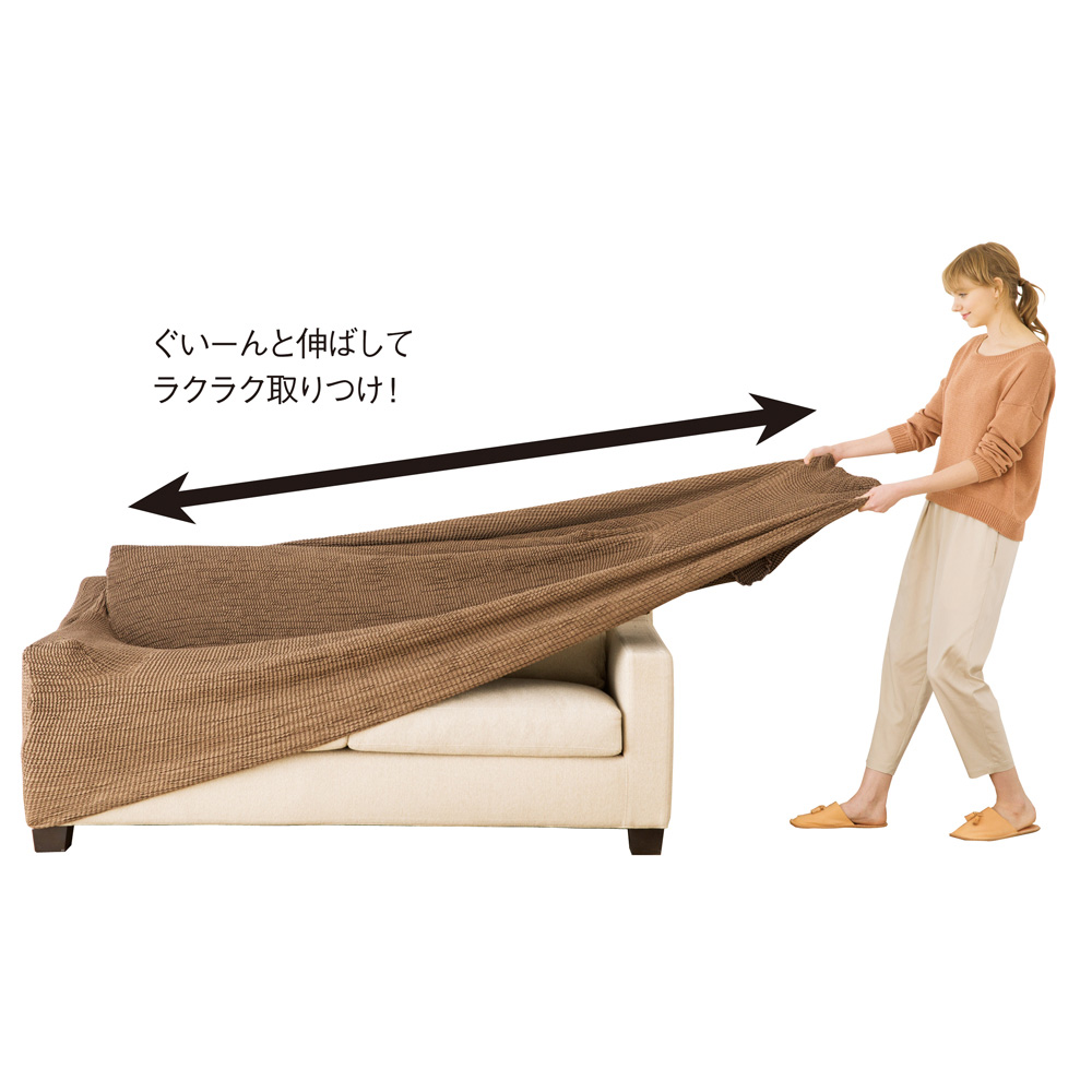◆満足度大のスーパーストレッチソファカバー◆驚くほどよく伸びて着脱らくらくの進化したフィット感!スペイン製ならではの豊富な美発色カラーも魅力的です。伸縮性に優れたスーパーストレッチ素材のビスタ驚くほどよく伸びて伸縮性に優れているのがビスタの特徴。新開発のスーパーストレッチ素材を採用しておりタテヨコにぐ〜んと伸びるため、様々なソファにフィット。着脱もらくらくです。掛けるだけでまるで新品長年愛用してきた大切なソファが痛んできた…そんなときにこのフィットカバーを掛けるだけで大切なお手持ちのソファがまるで新品のように生まれ変わります。ソファにカバーをかけて余った布を隙間に押し込むだけで装着完了!お部屋の中でも面積の大きいソファ。だからこそフィットカバーを替えるだけで、印象が変わり、手軽にプチリフォーム気分が味わえます。さまざまな形状にピッタリフィットお使いのソファにかぶせ、すき間に布を押し込めば出来上がり!簡単らくらく取り付けで、ソファの張地のようにぴたっとキレイにフィットし仕上がりもきれい。豊富なサイズ展開も自慢です。素肌にうれしい綿混素材優れた伸縮性はもちろん、素肌にもうれしい柔らかな綿混素材も人気のポイント。ポコポコとした凹凸感と肉厚で高級感のある風合いです。気分に合わせてお部屋の印象をガラリとチェンジ豊富なカラー展開を備えているので気分に合わせてお好きなカラーを選んでいただけます。気軽にお部屋の印象を変えることが出来るのもソファカバーならではの魅力です。ご自宅で丸洗いOKなのがうれしい万が一ソファを汚してしまっても、さっとカバーを外してご自宅で丸洗いできるのが頼もしい!いつでも清潔な状態で気持ちよくお使いいただけます。ちいさなお子様やペットがいるご家庭にも。大切なソファの美しさを守りますお手持ちの大切なソファを汚れや傷から守り、今の美しさをキープ。普段はフィットカバーを掛けておき、来客時にサッと外す使い方もおすすめです。