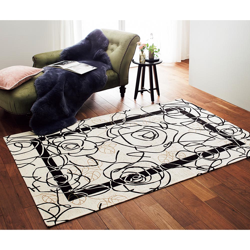 カメリアモチーフを大胆にデザインした、イタリア製ラグ&マット。シェニール糸を贅沢に使ったゴブラン織は、程よい厚みでふんわり柔らか。ご家庭の洗濯機で洗えてお手入れも簡単です。多サイズ・多カラー展開も魅力の人気商品です。ラグジュアリーなカメリアモチーフを大胆にデザインした、イタリア製のゴブランラグ。シェニール糸を贅沢に使ったゴブラン織は、程よい厚みでふんわり柔らか。汚れても、ご家庭で洗えるのもポイント。多サイズ展開・多カラー展開でご用意しました。ゴブラン織りとは織物の一種。絵模様を織り出したヨーロッパの「綴れ織り(つづれおり)」のことで、多色の糸を使用できるため、タペストリーのような繊細な表現ができる織物の一般名称になっています。名前の成り立ちは、15世紀にゴブラン一家がパリで作った染色工場の場所に、17世紀にタペストリーの国立工房が作られ発展したことにゴブランの名の由来があります。ゴブラン織りの特長ゴブラン織りは織物のため比較的薄手で、段差ができにくく、ドアの開閉にも邪魔になりにくいので、いろいろなお部屋に使えます。