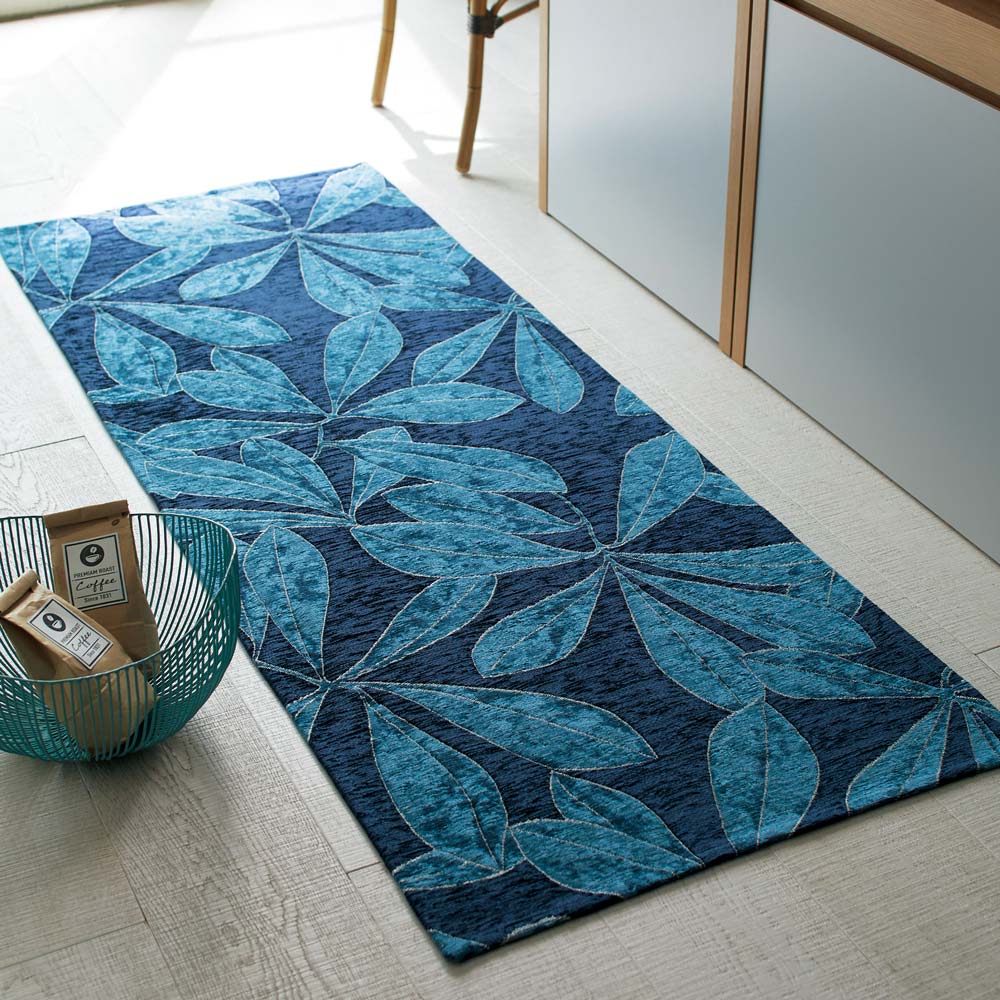 イタリアンデザインならではの大胆なモチーフと繊細な表現力。キッチンにリビングに、使い方広がるロングマット。存在感のある美しいデザインと高い品質。日常に素敵な彩りを添えてくれるマット。自然の優美さを表現したリーフ柄は、見る角度によって表情が変わります。シェニール糸を使ったジャカード織で、適度なボリューム感がありながら厚さ約3ミリと薄手なので、ご自宅でのお洗濯も簡単。ドアの開閉のじゃまにもなりません。同シリーズのラグやソファカバーと、トータルにコーディネートできます。【ポイント1】リーフモチーフシェニール糸を使用したリーフモチーフ。厚さ約3ミリの使いやすいフラットタイプです。【ポイント2】裏面は滑りにくい加工裏面には滑りにくい加工が施されていますので、ズレにくく快適にご使用いただけます。【ポイント3】床暖房対応床暖房のお部屋で使用できます。【ポイント4】丸洗いOK洗濯機で丸洗いできますので、いつも清潔に使えます。※乾燥機・ドラム式洗濯機は使用できません。