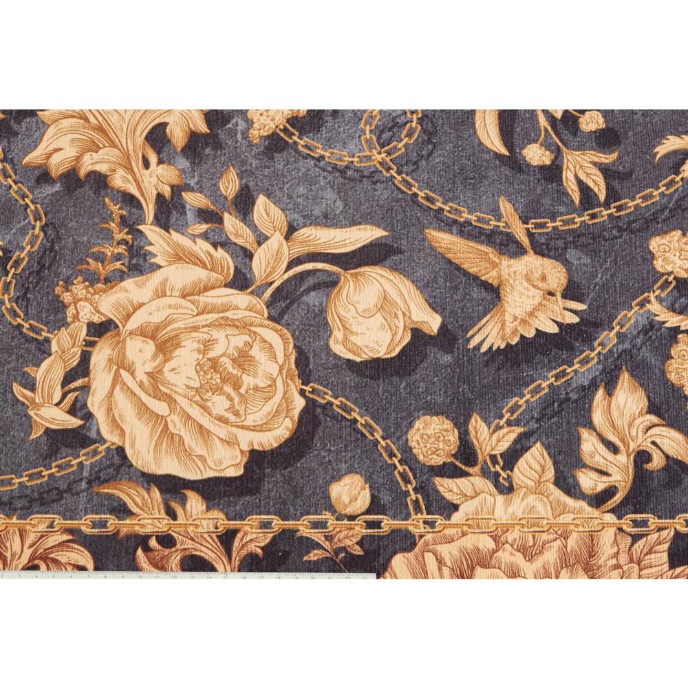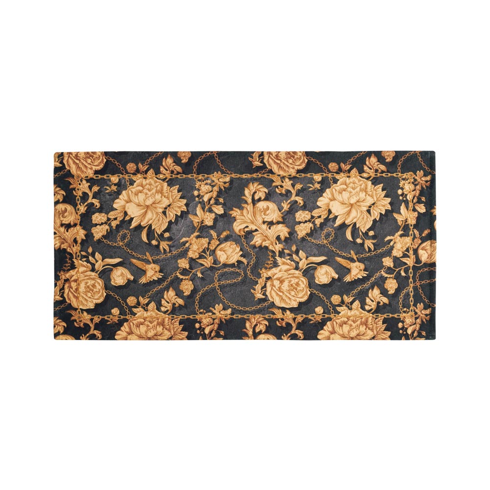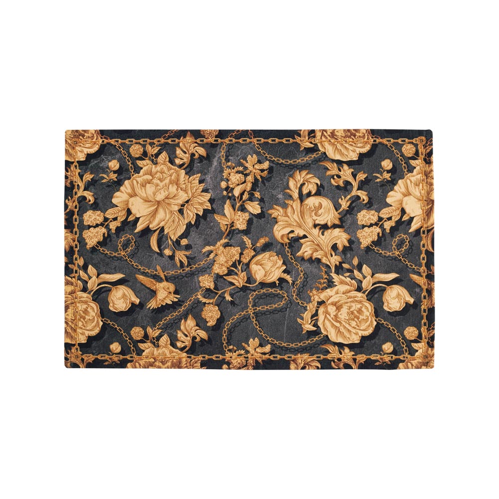 高級なジャカード織の生地にプリントされたイタリア製の玄関マット。イタリア・ミラノ郊外のFINCOP社による最先端の美しいプリント。ゴールドの花を織り込んだような緻密な柄を最先端プリント技術で表現。高級感あるジャカード織ながら、厚さ3mmでつまずきにくい仕様です。