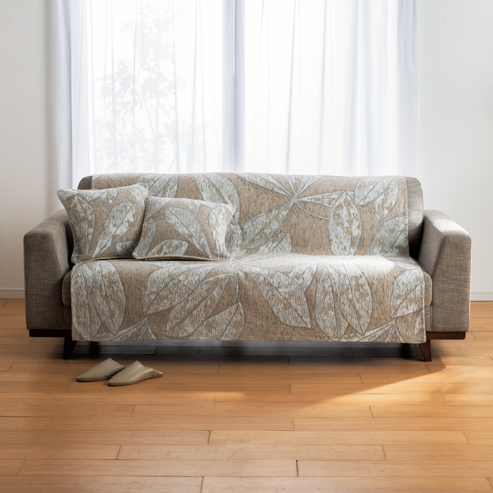 イタリアンデザインならではの大胆なモチーフと繊細な表現力。なめらかな風合いの、フラットタイプのソファカバー。存在感のある美しいデザインと高い品質。日常に素敵な彩りを添えてくれるソファカバー。自然の優美さを表現したリーフ柄は、見る角度によって表情が変わります。シェニール糸を使ったジャカード織で、適度なボリューム感がありながら薄手なので、ご自宅でのお洗濯も簡単です。同シリーズのラグやマットと、トータルにコーディネートできます。【ポイント1】リーフモチーフシェニール糸を使用した高級感のあるリーフモチーフ。【ポイント2】丸洗いOK洗濯機で丸洗いできますので、いつも清潔に使えます。※乾燥機・ドラム式洗濯機は使用できません。