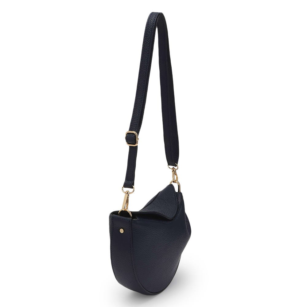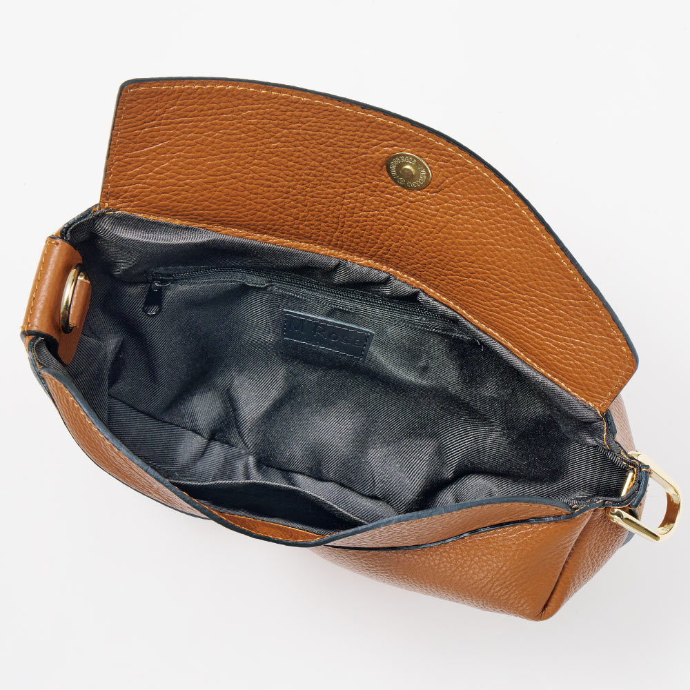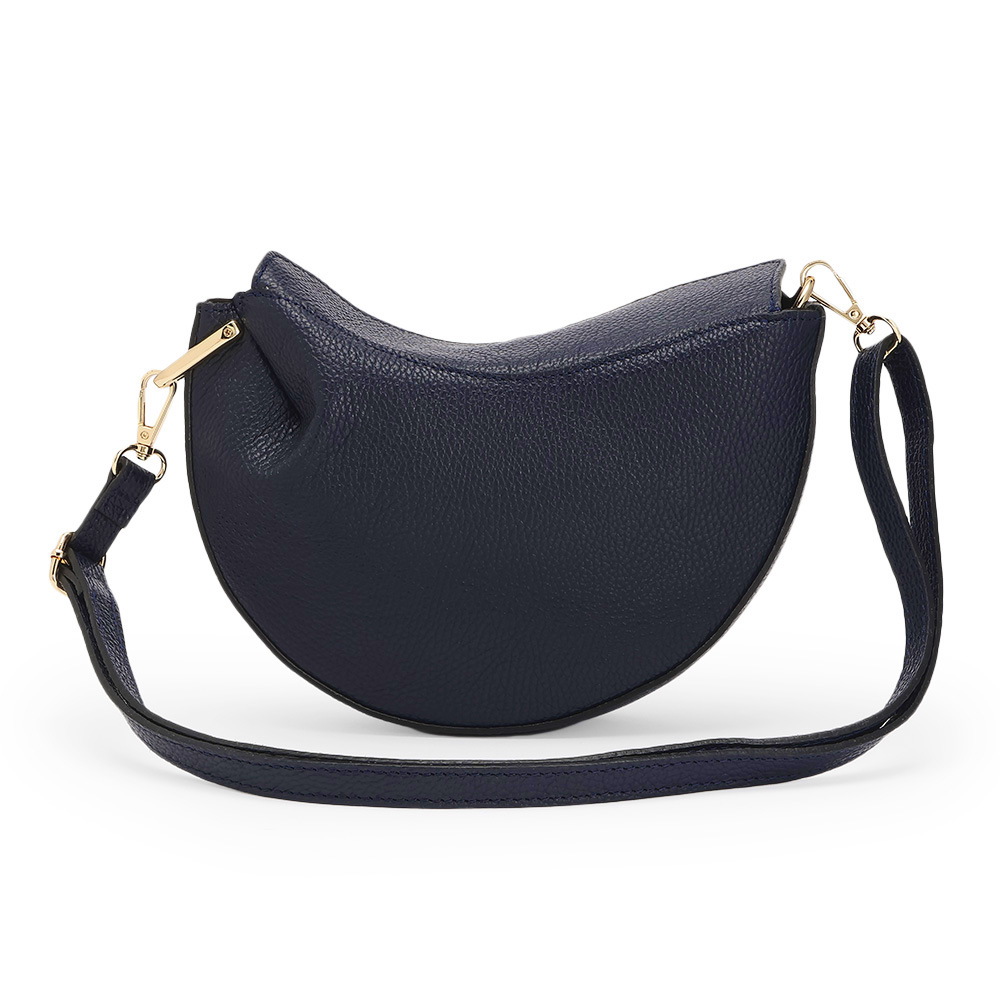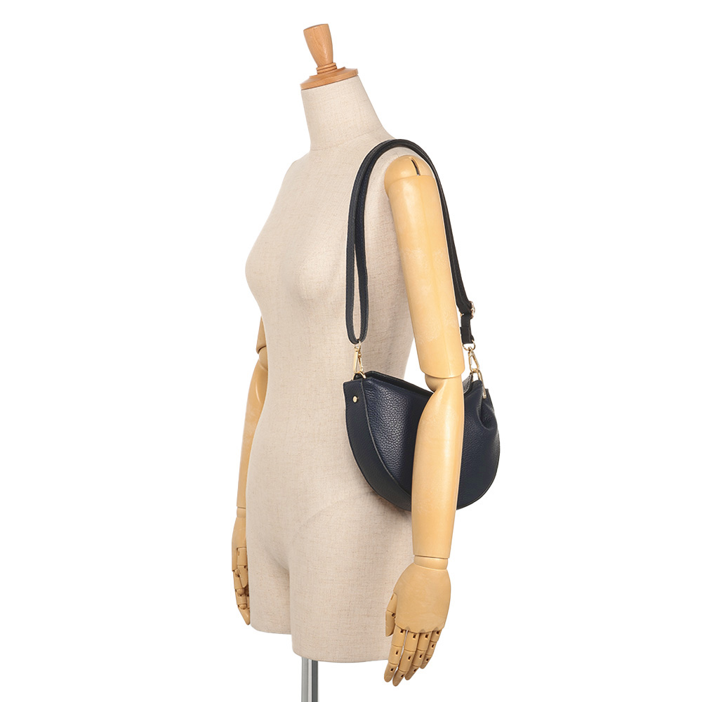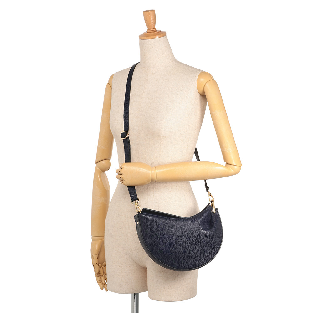 イタリアの職人技が光る、優美なハーフムーン流行のハーフムーンも「M rose(エンメローズ)」ならエレガントな仕上り。上質なシュリンク型押し革と拘りの造形が、イタリア製こその洗練を物語ります。天蓋は開閉しやすいマグネット式、ストラップは長さ調節できて斜め掛けも可能。