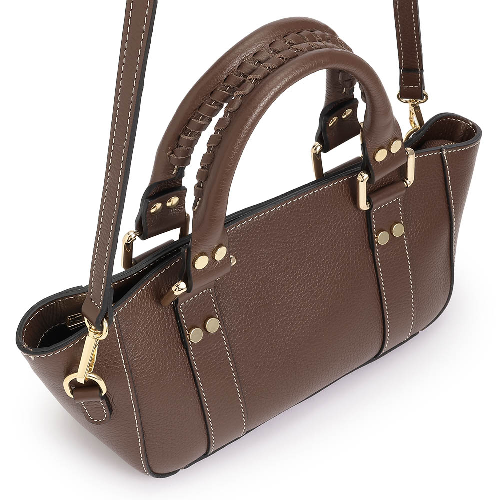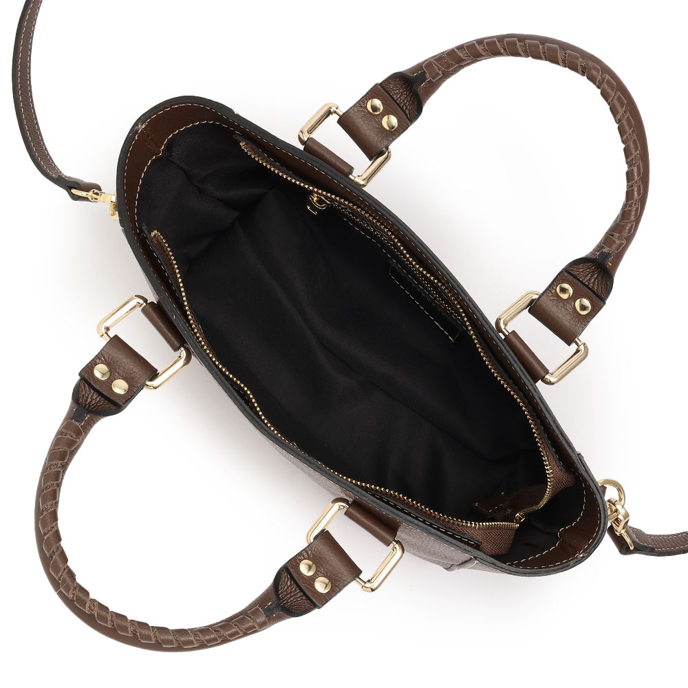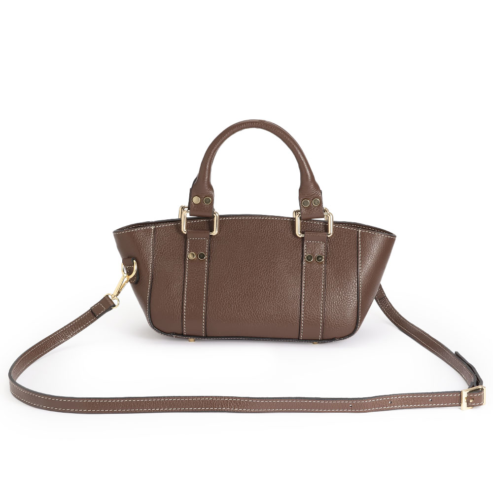 シンプルなコーディネートに映える小物をご紹介。きれいめにまとめたいときは、レザーアイテムでハクを演出してみては?上質感がある牛革で、ブラックはクロコ型押し、ブラウンはシボ感のあるシュリンク型押しです。取り外し可能のショルダーストラップつきで、シチュエーションを選ばずに活躍。ハイセンスな横長デザインとアクセントになるゴールドの金具で大人っぽく。