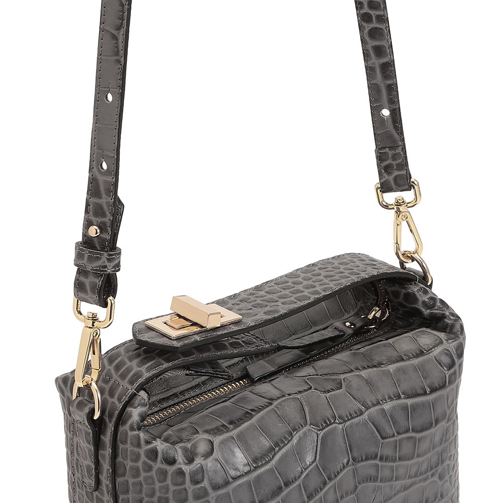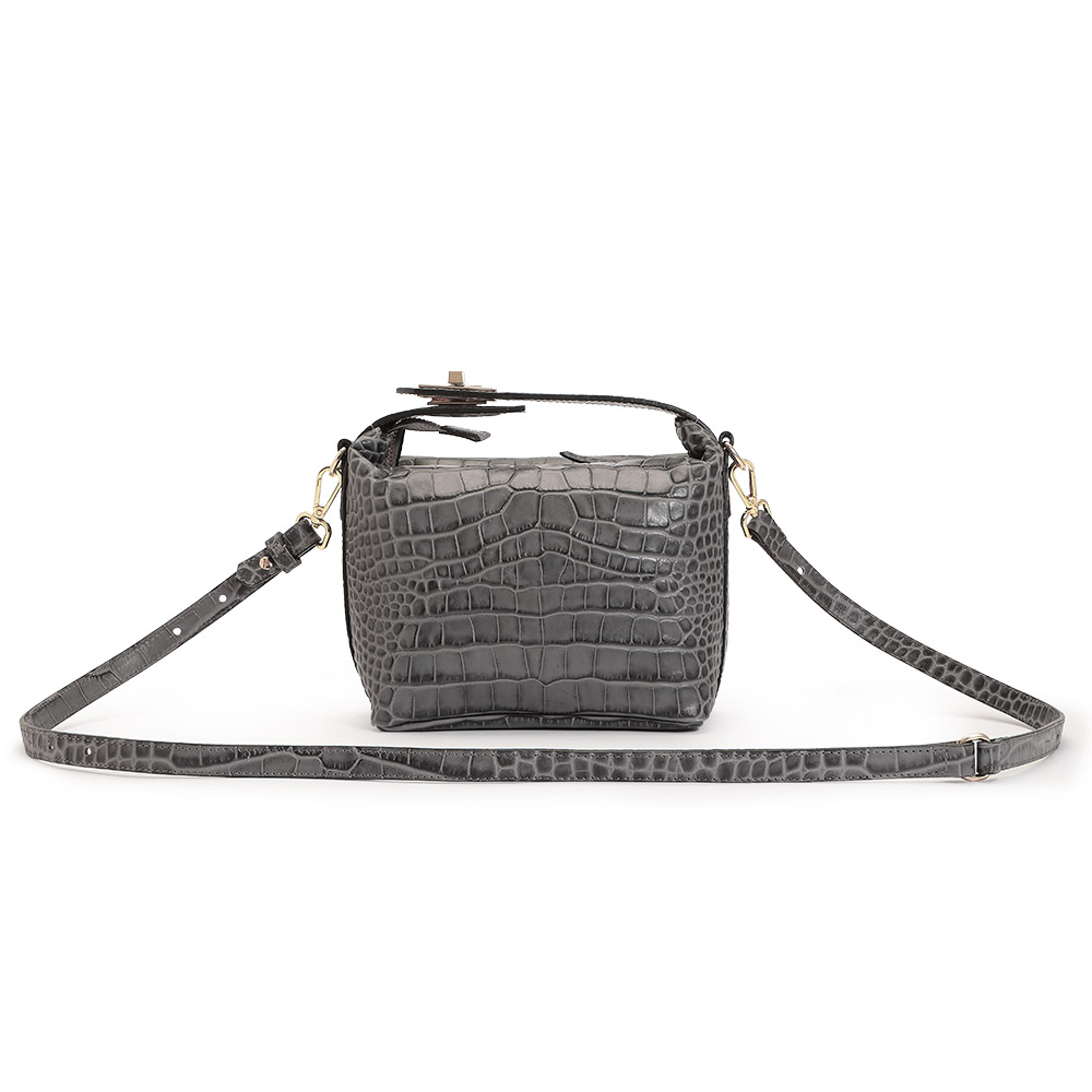 Casual item大人の日々を彩る上質感という拘り、さりげない豊かさを。キュートなフォルムをリュクスな素材で格上げ濃淡を付けた丁寧な染めが美しい斑模様を際立たせるキューブ型バッグ。コンパクトながら収納力があり、ハンドル部分のターンロックを外せば、口元が大きく開いて出し入れもスムーズです。