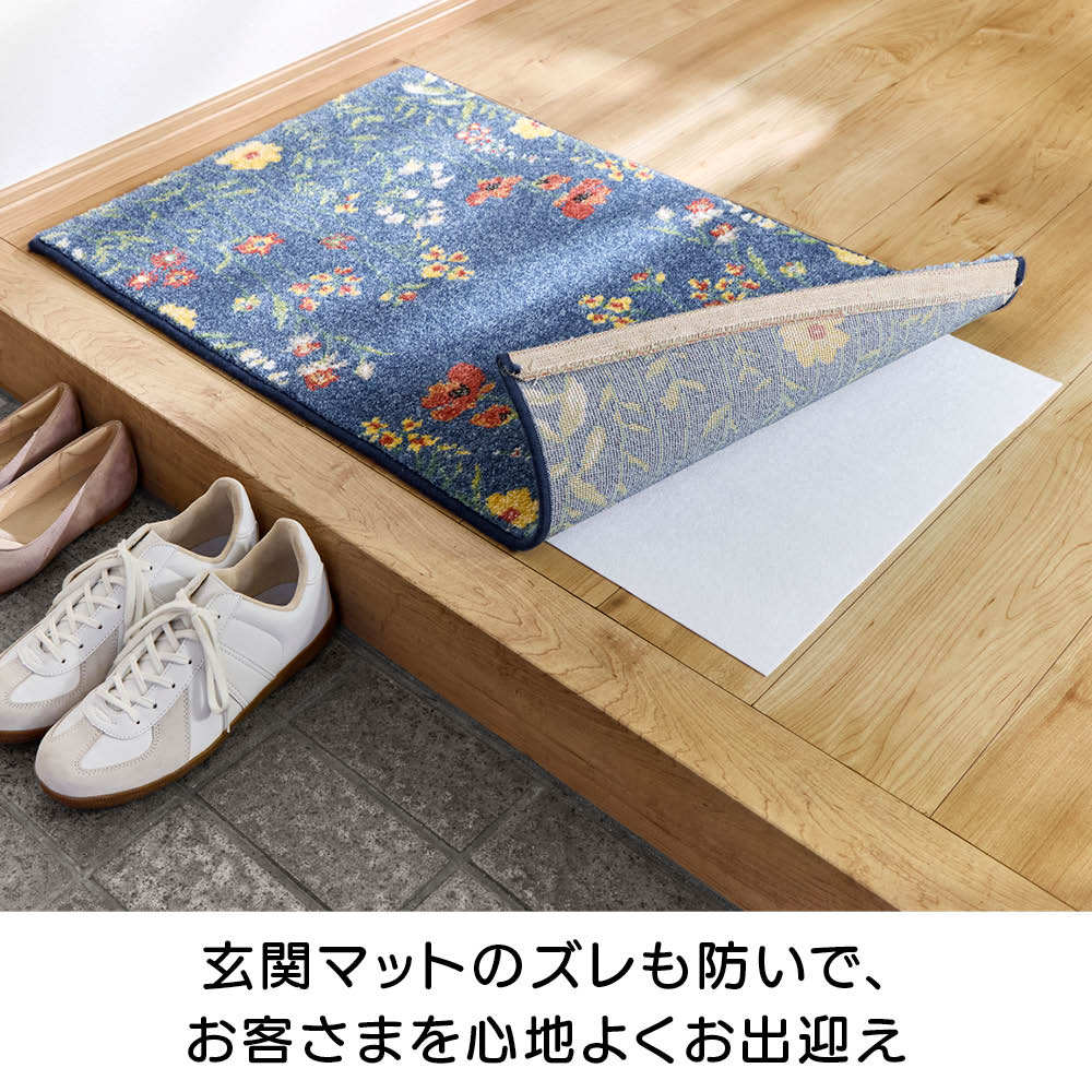 玄関マットのズレも防いで、お客さまを心地よくお出迎えお客さまを迎える玄関マットも、ズレていると残念な印象に。このファブリックストッパーを敷けば、ズレを防いで美しい状態をキープできます。