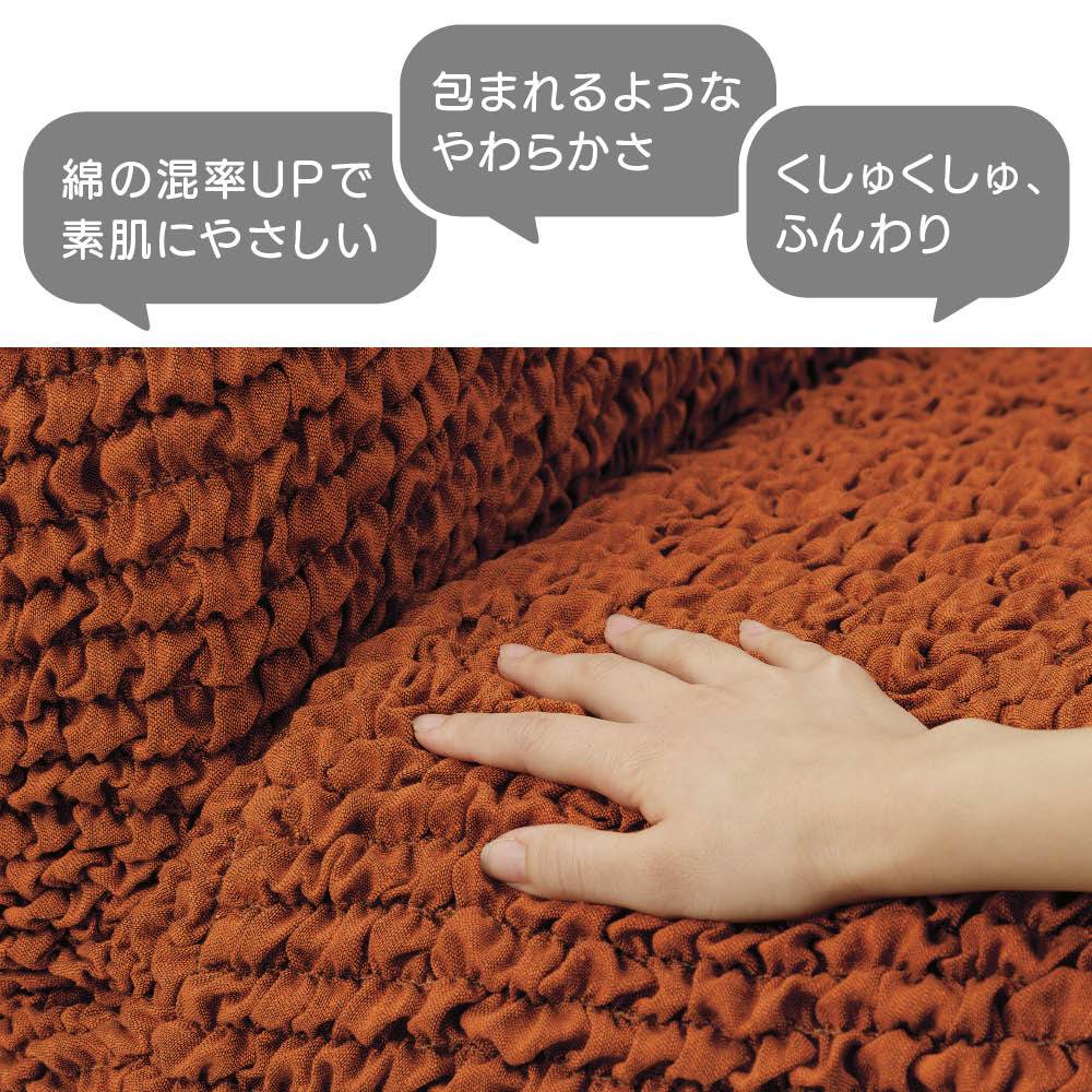 ディノスの人気No.1イタリア製ソファカバーが、さらに進化!メーカー独自開発の製法により伸縮性が大幅にアップし、オットマンに美しくフィットします。くしゅっとした凹凸のある生地は、イタリア製ならではのカラーとサラリとした肌ざわりでオールシーズン快適に使えるのも魅力。豊富なサイズとカラーからお部屋にぴったりの一枚をお選びいただけます。くつろぎの時間をより心地よくしてくれるソファカバー「ブックレ エクストラ」。20年近く愛され続けるロングセラー商品が、お客様の声からさらに進化しました。「使っているうちに伸びて、たるんでしまう...」というご要望にお応えし、メーカー独自開発の構造で伸縮性が持続するようリニューアル。イタリア製ならではの深みのある色合いと、触れるたびに心までほぐれるような柔らかな風合い、そしてソファに張り替えたかのようなフィット感。伸縮性とボリューム感を高めた"感動のフィット感"を、ぜひ実感していただきたいです。タテヨコにぐーんと伸びる生地が美しいフィット感を持続メーカー独自開発の製法により、生地が縦横にぐんと伸びてしっかり元に戻る"キックバック性"が大幅にアップしました。裏側のシャーリング状のゴムにより生地が「しなやかに伸びて、しっかり戻る」構造のため、伸縮性が持続します。旧タイプに比べ、多様な形状のソファにフィットしやすく、ずれにくく、時間が経ってもきれいな形を保てます。生地の分量も増やしたことで、無理に引っ張らなくても自然なゆとりをもって掛けられるようになりました。触れるたび心までほぐれるやさしさ─綿60%の柔らかな肌触りコットンをたっぷり使用したナチュラルな風合いは、触れるたびに心までほぐれるような優しさ。くしゅっとした独特の表情が陰影を生み、豊かな表情と深みのある質感を演出します。イタリア製ならではのセンスや高級感を備えながらも、どこか懐かしく安心感のあるぬくもりが感じられるのは、素材へのこだわりがあるから。肌に直接触れるものだからこそ、座るたびに「ほっ」と一息つけるような心地よさを大切にしました。 丸洗いできるから清潔に長く愛用できる実用性洗濯機で丸洗いができるので、いつでも清潔に保てます。愛着のあるソファと長く、美しく、楽しく暮らすための工夫を凝縮したソファカバーです。インテリアにもなじむトレンドをおさえた深みのある全8カラー全8色をフルリニューアル。イタリアらしいセンスが光るトレンドを取り入れた落ち着いたカラーで、イタリア製ならではの発色の美しさが届いたその日からお部屋にしっくりなじみます。アイボリーやベージュといったベーシックカラーはもちろん、深みのあるブルーやワインなど、空間に彩りを加えるアクセントカラーも充実。くしゅくしゅとした風合いが陰影を生み、インテリアに豊かな表情をもたらします。1965年創業のイタリア・ガイコ社が手がける確かな品質イタリアのベルガモ近郊にあるGA.I.CO(ガイコ)社は、1965年創業のソファカバーメーカー。ミラノから列車で1時間ほどのベルガモは、現代的な新市街地と古い宮殿やモニュメントが共存する美しく静かな街です。ガイコ社が手がけるソファカバー<ブックレエクストラ>は、ファブリックの国イタリアならではの色使いとフィット感が特長です。生地の生産から縫製まで全工程を手がける、クオリティの高さも魅力の一つです。ソファとの暮らしを豊かに変えるブックレ エクストラ。古くなったソファのリフレッシュから、大切なソファの汚れ対策、季節や気分に合わせたお部屋のイメージチェンジまで、その使い方は自由自在。「家具を買い替える」ことなく、「長く愛用する」価値観を大切にしたこの一枚が、毎日のくつろぎの時間をより豊かに彩ります。洗い替えに複数のカラーを揃えて、気分によってお部屋の表情を変える楽しみ方もおすすめです。掛けるだけで、ソファも空間も、そして暮らしも、心地よい新しさを感じられると思います。