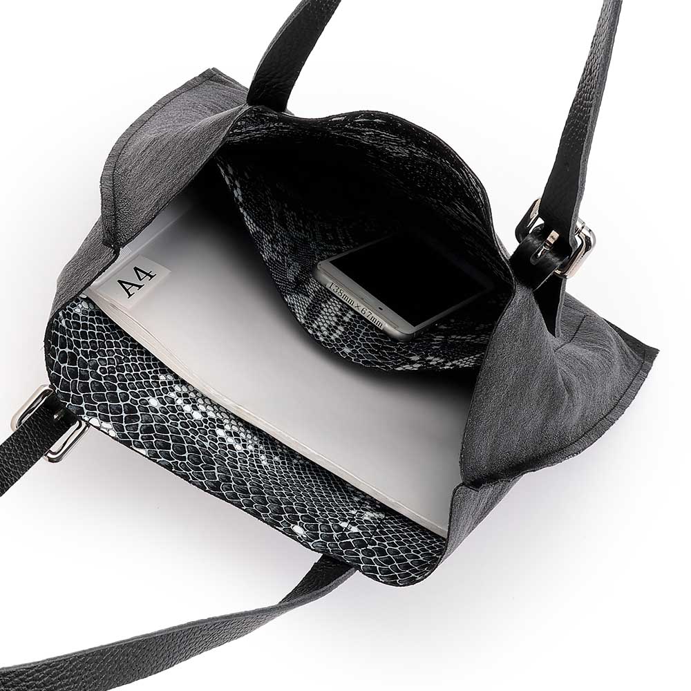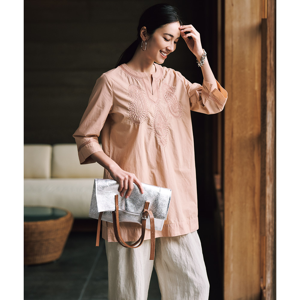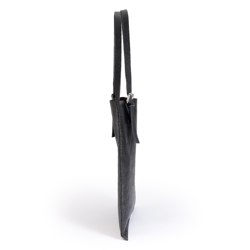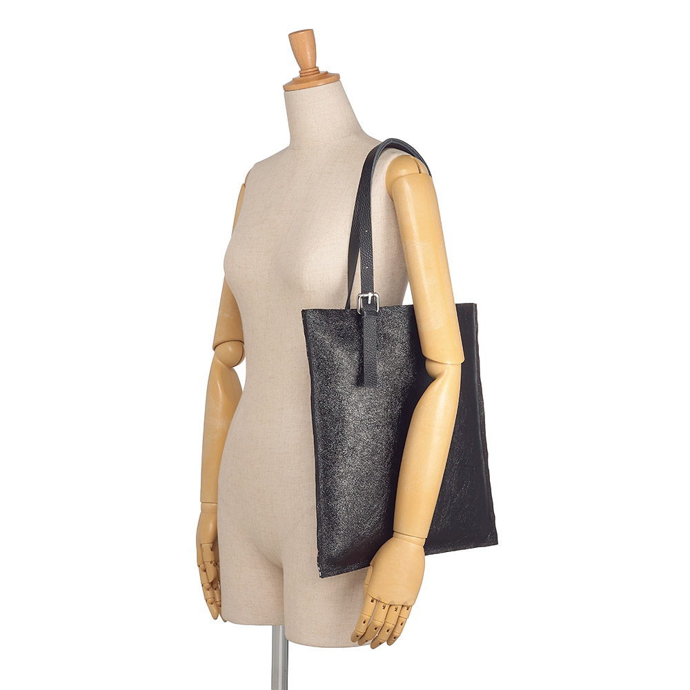 CASUAL ITEM爽やかな風に誘われて、足取りも軽く心踊る季節。カジュアルを格上げする上質なデイリー小物をセレクト!ミニマルに終わらない遊び心に魅了されてしなやかなメタリックレザーの薄マチトート。長さ調節できるアシンメトリーなハンドルはソリッドなレザーで、コントラストと機能を満たします。内側はパイソン柄をプリントし、イタリアらしい遊び心と洒落たセンスに脱帽です。