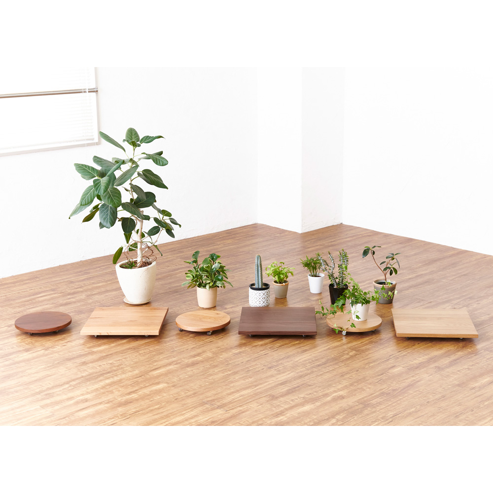 美しい無垢材、何を置く?植物や家電製品の移動に便利なキャスター付きのプランターベース。「天然木無垢材」を全面に使用した贅沢な作りで、お部屋のインテリアの雰囲気をワンランクアップしてくれます。天然木無垢材を贅沢に使用し、経年変化を楽しめるシンプルな仕上げに。重い鉢植えもサッと移動できます。