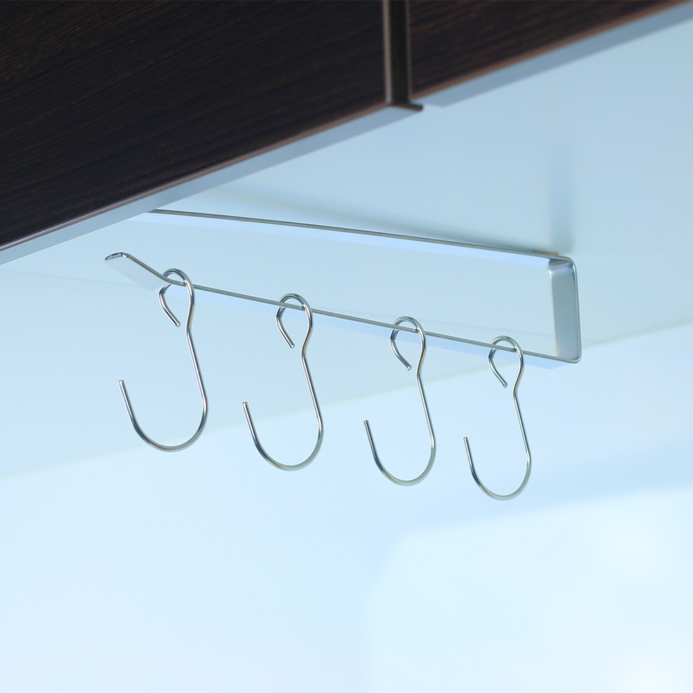 フックが手前から落ちにくいよう、引っ掛け部分が上にカーブしたデザインです。