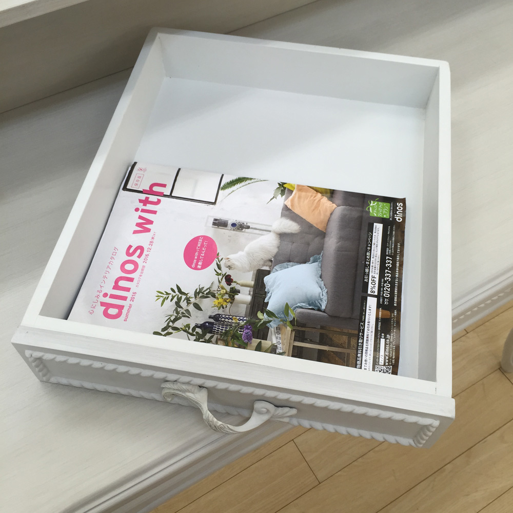 資料や文具の収納に便利な、奥行たっぷりの引き出しも魅力です。