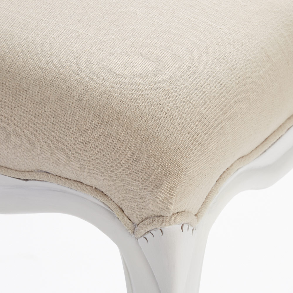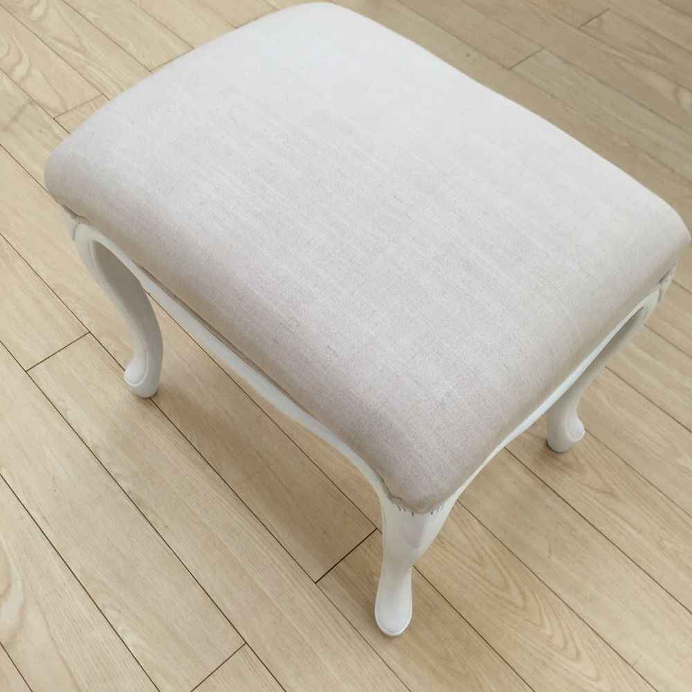 クラシックでいて柔和なグレイッシュホワイト色に、さり気なく愛らしい装飾。好きなものを選び抜く大人の女性にふさわしい、パリのアパルトマンのような一室に演出します。落ち着いた色味のホワイト色で、お部屋のインテリアにも優しく調和するおしゃれなアンティーク調のスツールです。〜大人の女性のためのシャビーシックなフレンチ空間〜◆落ち着きのあるグレーがかったホワイト色で、上品な美しさをたたえます。◆長年使いこまれたような味わいが出るよう、表情豊かなアンティーク加工に仕上げました。◆ボリュームのある柔らかな座面で、品の良いかわいらしさを演出します。◆丸みのあるねこ脚の曲線美で、さりげないエレガントさが魅力です。◆映画に出てくる海外インテリアのようなおしゃれなインテリア空間を、ご自宅でお手軽にお楽しみいただけます。◆アンティーククラシック風やナチュラルフレンチカントリー風のお部屋コーディネートにもおすすめです。〜ふっくらとしたクッションの、上品な椅子〜◆アイボリーのファブリックが優しい印象のスツールです。◆シンプルで品の良いデザインなので、書斎やベッドルーム、リビング、ピアノ用のイスとしての使用はもちろん、オットマンや玄関先の腰掛けとしてもお使いいただけます。◆シャビーシックホワイトシリーズのドレッサー・デスクにピッタリの高さです。◆ドレッサー・デスクのスツールとして合わせても、単体での使用もおすすめです。〜商品担当者のコメント〜お洒落でクラシックなフォルムとポイント使いの優美なリボンモチーフで、憧れの空間が叶う大人の白家具シリーズです。グレー味のかかった落ち着いた白色なので、お部屋のインテリアになじみながら、上品に存在感を放ちます。自分へのご褒美やお部屋の模様替えにもオススメの心ときめくクラシック家具で、毎日の「自分時間」をより贅沢にお楽しみいただけたら幸いです。※手作業によるアンティーク風仕上げおよび天然素材の性質上、塗装の濃淡・かすれ等の風合いは1点ずつ異なります。商品全体、特に手彫り部分は職人の手作業で、部分的に長年使用したような汚れ、キズなどを再現しています。味わい深く趣のある風合いをお楽しみください。