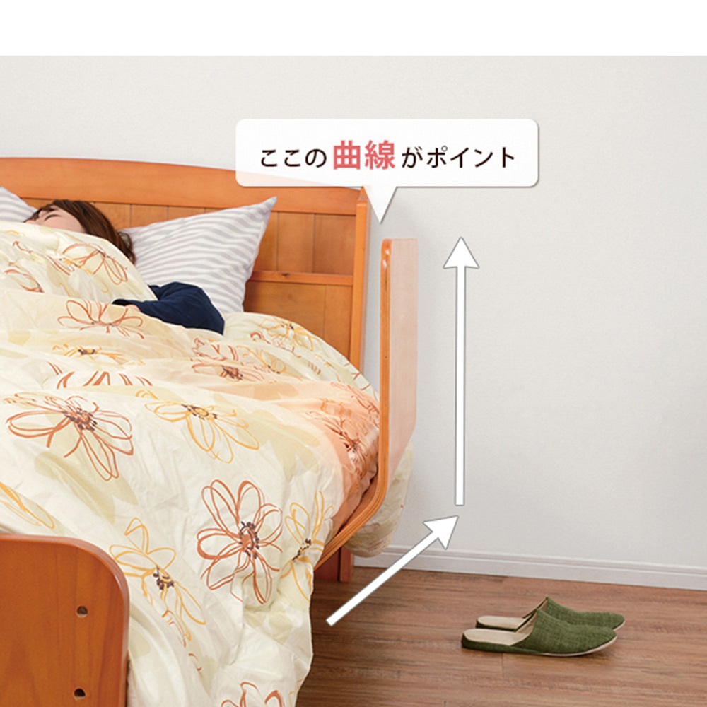 布団のズレ落ち防止に役立つベッドサイドガード。ベッドとマットにはさむだけの簡単設置で布団のズレ落ちを防止。ネジや釘を使わない安心安全設計商品です!安心・簡単設置がうれしい!●設置はベッドとマット商品を挟むだけ!●設置位置も頭部分〜胴体部分〜脚部分とお好みの場所に設置できます。快適な睡眠への配慮!●本体はふくらみを持たせた形状となっており、窮屈感を与えずベッドも広々!●ネジや釘を全く使っていないので、安心してご利用いただけます。選べる4色でインテリア性も高い!●商品は白樺積層合板。●色はナチュラル、ライトブラウン、ダークブラウン、ホワイトウォッシュの4色●お部屋のテイスト、ベットやお布団に合わせてお選びください。シリーズ紹介●お得な同色2個組、1個単位からも注文できます。※⇒このページは2個組のご注文となります。