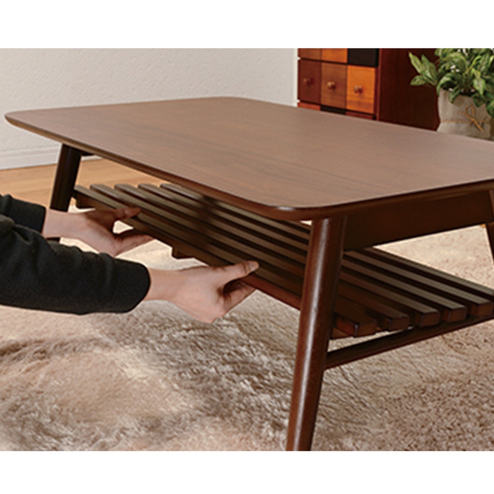 場所をとらず収納可能な天然木の風合いが美しい北欧風のローテーブル!折りたためば高さわずか8cmになる利便性!一人暮らしのお部屋やサイドテーブルにもピッタリなサイズ感です。天然木の風合いそのまま、折りたたみ式の使い勝手もうれしい!●天板はウォルナット(ブラウン)、アカシア(ライトブラウン)の天然木突板の2色から選べます。●脚部もラバーウッドで天然木仕様です。●デザイン性に長けたシャープなデザインもウリです。●折りたたみ式となっており、模様替えの時など省スペースでの収納も簡単!テーブル下には便利な棚付き!●細々したものの収納、テーブルの上に置きっぱなしにしてしまうものの一時保管場所等に便利です。●棚板は取り外しての使用も可能なので、シーンに合わせて取り付けたり外したりお好みで設置下さい。使い勝手のいいコンパクトなサイズ感がうれしい!●幅90cm奥行50cm高さ35cmのコンパクトで使い勝手のいいサイズ感を採用。●床から天板下までの内寸は33cmになります。●床から棚までの内寸高さは16cm、棚から天板までの内寸高さは15cmとなります。