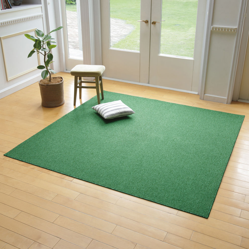 敷きこんでお部屋にぴったり!実用的でシックなサンゲツの6機能(遊び毛が出にくい・はっ水&防汚加工・防炎・制電・防ダニ加工・抗菌加工)ラグ。