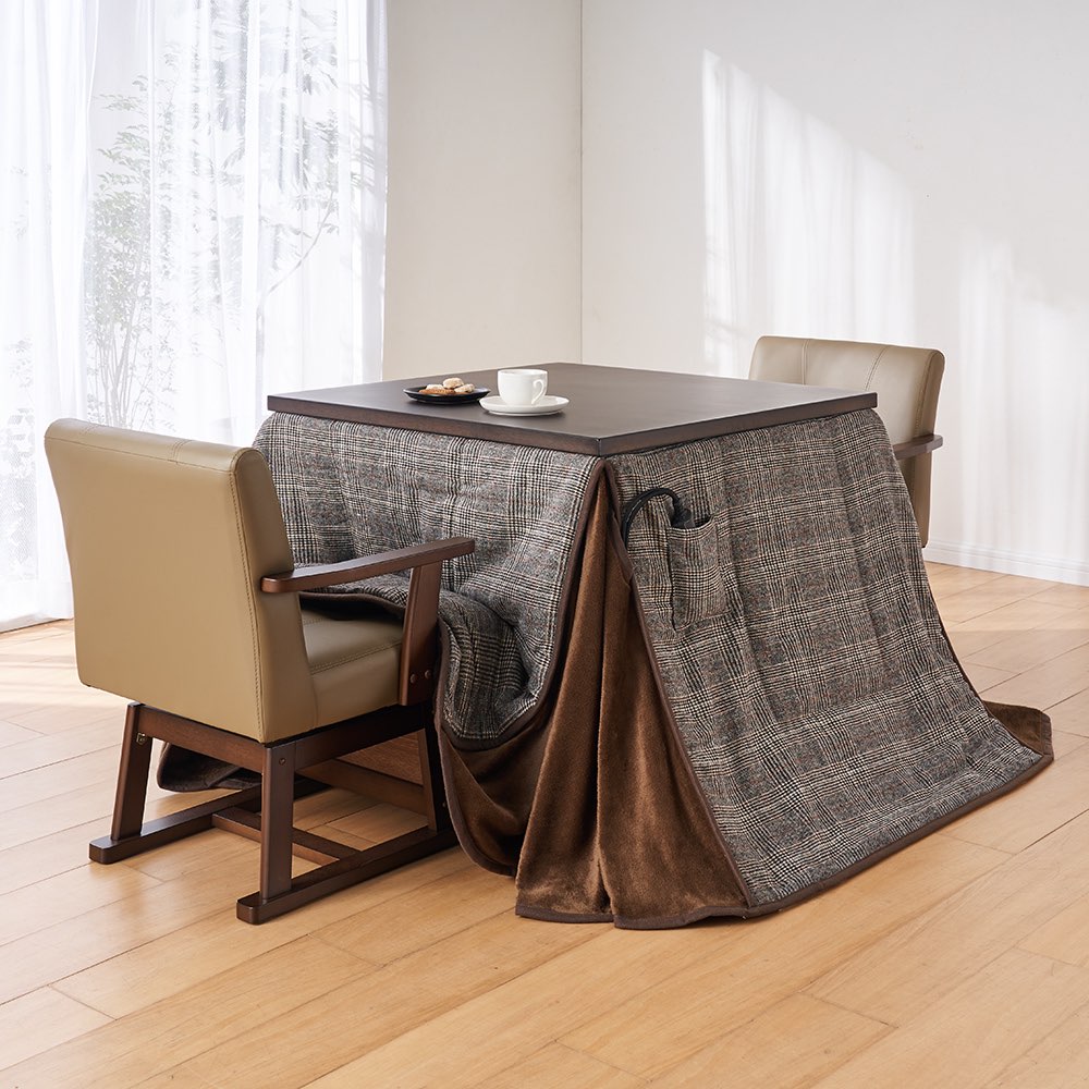 【高さ65cm:継ぎ脚10cm+10cm使用時】(※写真はテーブル80×80cm)※ふとん・椅子は別売りです