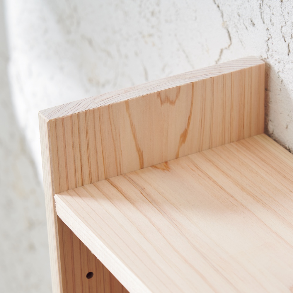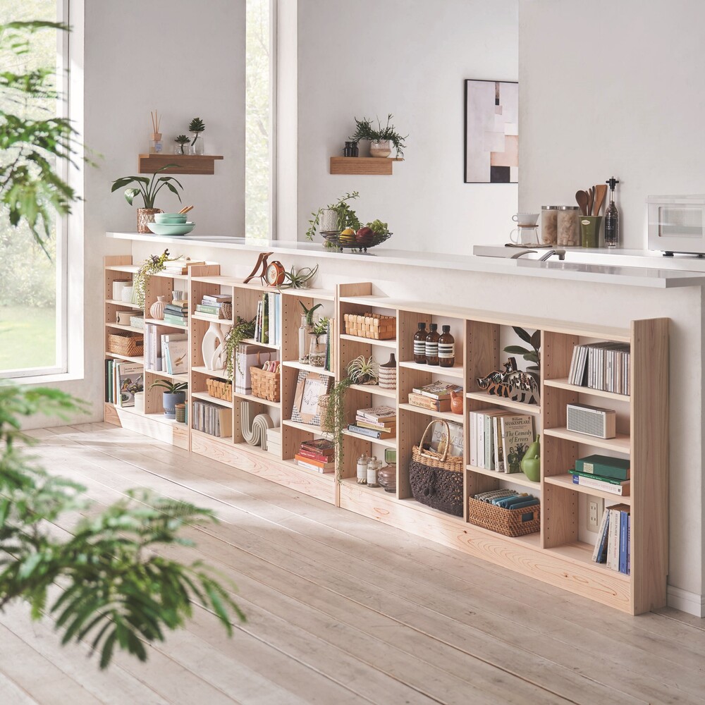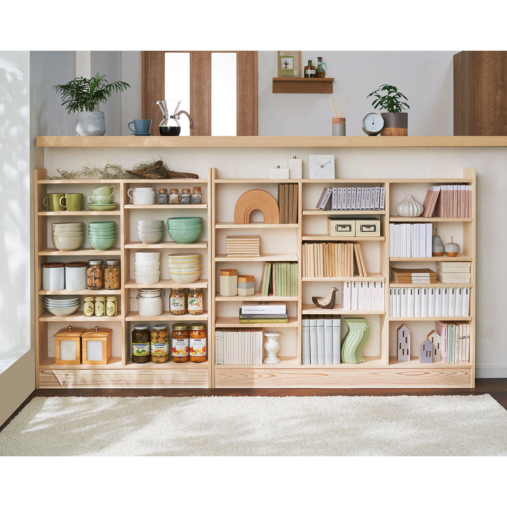 国産の天然ひのきを使用した、奥行わずか15cmのラックシリーズ。暮らしに寄り添う天然木の表情と、ひのきの豊かな香りが魅力です。飛騨の熟練の匠が、心を込めて1本1本丁寧に仕上げます。使用例(左から幅150高さ100cm、幅90高さ70cm、幅150高さ70cm)国産天然木の柔らかな表情が魅力、薄型収納ラックシリーズカウンター下や窓下、廊下など、デッドスペースになりがちな空間を実用的な収納スペースに変える、奥行15cmの薄型ラック。リビングダイニングなどの憩いの場にも調和する、天然木の質感を存分にいかしたシリーズです。使用例(左から幅90高さ85cm、幅120高さ85cm、幅150高さ85cm)奥行わずか15cm、設置場所を選びませんちょっとしたスペースに置ける、奥行浅めの薄型収納。奥行の浅いキッチンカウンターの下にもキレイに収まります。リビングの窓下などに設置すれば、電話台、ローボード・窓下収納としても活躍。リビングに散らばりがちな小物をまとめてスッキリ。寝室などの窓下に設置して、書斎に収まりきらない本、CDやDVDなどの収納にもおすすめ。使用例(幅120高さ70cm)狭い場所にも圧迫感なく置ける収納を諦めていたダイニングや廊下の壁面にも置けます。狭い玄関、リビングの空きスペースなど、様々なデッドスペースを有効活用。※赤文字は内寸(単位:cm)幅90cm高さ70cmタイプ幅120cm高さ70cmタイプ幅150cm高さ70cmタイプお届け商品は「高さ70cm」タイプです。幅は、90・120・150cmからお選びください。もしもの時も安心な、転倒防止金具が付属しています。薄型だけど頑丈仕様棚板耐荷重は1枚あたり約15kg!本や食器など重いものも安心して置けます。薄型でも収納力たっぷり。中皿や小鉢、買い置きの缶詰や瓶詰をまとめて、食器棚・キッチンストッカーとしてもお勧めの隙間収納です。高さ調整可能な棚板、背板がない仕様棚板は3cm間隔の可動式。物に合わせて高さ調節ができ、効率よく収納できます。また、背板がないので壁面のコンセントを活かすことができます。国産の檜無垢材を使用堅牢さと美しい木目、なめらかな手触り、香りが非常に高く建築材としても有名な国産檜。使い込む程に樹脂が表面に滲んで、味わい深い風格を与えます。天然木の優しい温もりと「ヒノキチオール」による抗菌、防腐、消臭作用で、ダニや細菌を寄せ付けないといわれています。また、粘り強い木材としても有名で、棚板耐荷重約30kgを実現。豊かな風合いが魅力の無垢材は北欧家具・北欧インテリアにも優しく調和します。安心と信頼の職人技が光る国産家具熟練の飛騨の家具職人がひとつずつ丁寧に仕上げた日本製。環境に配慮したF☆☆☆☆の材料を使用しています。組立不要の完成品でお届け。商品が到着したらすぐに使えるのも嬉しいポイントです。国産国消への取り組みとして、国内製造業の大切さに改めて目を向け、安心・信頼感の高い「Made in Japan」を応援していきたいと考えております。希少価値の高い国産檜を使用した匠のこだわり商品をぜひともお楽しみください。