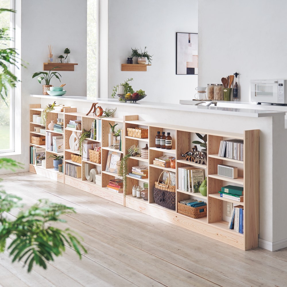 国産の天然ひのきを使用した、奥行わずか15cmのラックシリーズ。暮らしに寄り添う天然木の表情と、ひのきの豊かな香りが魅力です。飛騨の熟練の匠が、心を込めて1本1本丁寧に仕上げます。使用例(左から幅90高さ85cm、幅120高さ85cm、幅150高さ85cm)国産天然木の柔らかな表情が魅力、薄型収納ラックシリーズカウンター下や窓下、廊下など、デッドスペースになりがちな空間を実用的な収納スペースに変える、奥行15cmの薄型ラック。リビングダイニングなどの憩いの場にも調和する、天然木の質感を存分にいかしたシリーズです。使用例(左から幅150高さ100cm、幅90高さ70cm、幅150高さ70cm)奥行わずか15cm、設置場所を選びませんちょっとしたスペースに置ける、奥行浅めの薄型収納。奥行の浅いキッチンカウンターの下にもキレイに収まります。リビングの窓下などに設置すれば、電話台、ローボード・窓下収納としても活躍。リビングに散らばりがちな小物をまとめてスッキリ。寝室などの窓下に設置して、書斎に収まりきらない本、CDやDVDなどの収納にもおすすめ。使用例(幅120高さ70cm)狭い場所にも圧迫感なく置ける収納を諦めていたダイニングや廊下の壁面にも置けます。狭い玄関、リビングの空きスペースなど、様々なデッドスペースを有効活用。幅120cm高さ85cmタイプ ※赤文字は内寸(単位:cm)高さ85cmタイプお届け商品は「高さ85cm」タイプです。幅は、90・120・150cmからお選びください。もしもの時も安心な、転倒防止金具が付属しています。薄型だけど頑丈仕様棚板耐荷重は1枚あたり約15kg!本や食器など重いものも安心して置けます。薄型でも収納力たっぷり。中皿や小鉢、買い置きの缶詰や瓶詰をまとめて、食器棚・キッチンストッカーとしてもお勧めの隙間収納です。高さ調整可能な棚板、背板がない仕様棚板は3cm間隔の可動式。物に合わせて高さ調節ができ、効率よく収納できます。また、背板がないので壁面のコンセントを活かすことができます。国産の檜無垢材を使用堅牢さと美しい木目、なめらかな手触り、香りが非常に高く建築材としても有名な国産檜。使い込む程に樹脂が表面に滲んで、味わい深い風格を与えます。天然木の優しい温もりと「ヒノキチオール」による抗菌、防腐、消臭作用で、ダニや細菌を寄せ付けないといわれています。また、粘り強い木材としても有名で、棚板耐荷重約30kgを実現。豊かな風合いが魅力の無垢材は北欧家具・北欧インテリアにも優しく調和します。安心と信頼の職人技が光る国産家具熟練の飛騨の家具職人がひとつずつ丁寧に仕上げた日本製。環境に配慮したF☆☆☆☆の材料を使用しています。組立不要の完成品でお届け。商品が到着したらすぐに使えるのも嬉しいポイントです。国産国消への取り組みとして、国内製造業の大切さに改めて目を向け、安心・信頼感の高い「Made in Japan」を応援していきたいと考えております。希少価値の高い国産檜を使用した匠のこだわり商品をぜひともお楽しみください。