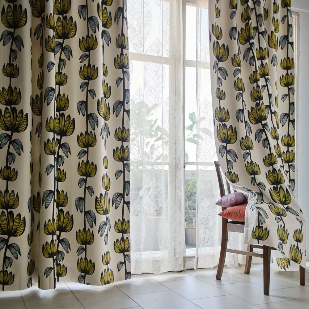 繊細な葉模様が美しいレースカーテン「カイホ」、ニュアンスカラーの大胆な花柄が人気の遮光カーテン「アルマ」を合わせて。お部屋に北欧のお庭を。Finlayson/フィンレイソン「FINLAYSON(フィンレイソン)」は、1820年に創業され、2020年に200周年を迎えた、北欧フィンランド最古のテキスタイルブランドです。スコットランド出身の「ジェームス・フィンレイソン」がフィンランドの第2の都市、タンペレに紡績工場を設立したことから始まり、その優れた経営手腕により、広大な工場の敷地内には、学校や図書館、病院、教会などの施設が作られ、タンペレはフィンランド最大の工業都市として発展を遂げました。フィンランド国民にとって「フィンレイソン」は単なる一企業ではなく、国の発展に長く貢献してきた大切な存在でもあり、伝統を守りながらも常に新しいものを創り出そうとする変わらぬ企業姿勢は、フィンランドの誇りでもあります。 1860年台には、フィンランドで初めて女性を雇用。1951年にはデザインアトリエを設立。その後も、長く愛され続けている人気のクラシック柄はもちろん、シーズンごとにトレンドのカラーやモチーフを取り入れた新鮮なデザインを発信し続け、北欧の自然や植物、四季の移り変わり、アートなどからインスピレーションを受けて生まれるテキスタイルは、フィンランドを超えて世界の人々を魅了しています。使う人の肌に触れて安心感を与えるもの。毎日の生活に存在すること、高品質のテキスタイルデザイン。楽しく元気で居心地のよい生活のために!世界をすこしでも住みやすくするために行動しよう!『We are connected!』ものごとも人々も、人生も愛も、みんな繋がっている。忘れがちな大切な繋がりを思い起こそう。フィンレイソンは、2020年に創業200周年を迎えました。"
