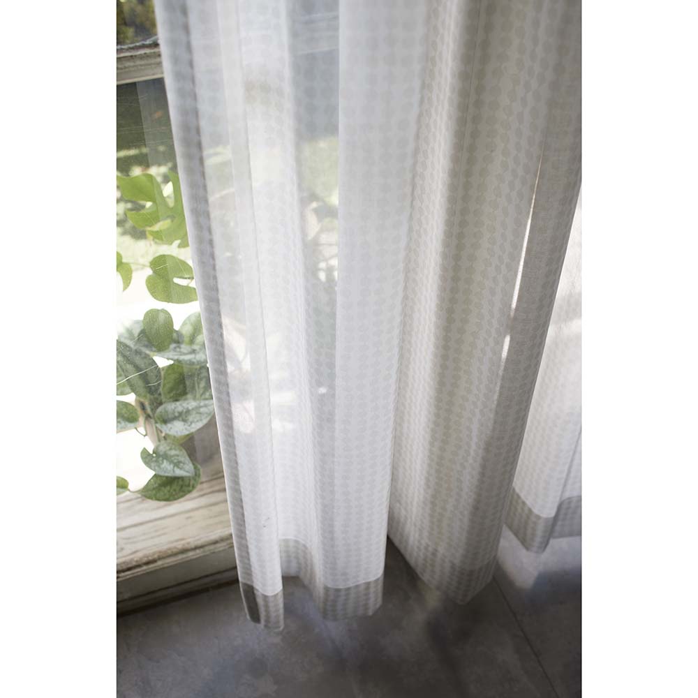 不揃いの水玉がリズミカルに流れるように連なった「PAMPULA」。綿100%のナチュラルな風合いがやさしい陽射しを作ります。【Finlayson/フィンレイソン】「FINLAYSON(フィンレイソン)」は、1820年に創業され、2020年に200周年を迎えた、北欧フィンランド最古のテキスタイルブランドです。スコットランド出身の「ジェームス・フィンレイソン」がフィンランドの第2の都市、タンペレに紡績工場を設立したことから始まり、その優れた経営手腕により、広大な工場の敷地内には、学校や図書館、病院、教会などの施設が作られ、タンペレはフィンランド最大の工業都市として発展を遂げました。フィンランド国民にとって「フィンレイソン」は単なる一企業ではなく、国の発展に長く貢献してきた大切な存在でもあり、伝統を守りながらも常に新しいものを創り出そうとする変わらぬ企業姿勢は、フィンランドの誇りでもあります。1860年台には、フィンランドで初めて女性を雇用。1951年にはデザインアトリエを設立。その後も、長く愛され続けている人気のクラシック柄はもちろん、シーズンごとにトレンドのカラーやモチーフを取り入れた新鮮なデザインを発信し続け、北欧の自然や植物、四季の移り変わり、アートなどからインスピレーションを受けて生まれるテキスタイルは、フィンランドを超えて世界の人々を魅了しています。【PAMPULA】「PAMPULA」はフィンレイソンの中でも多くの人から愛されているデザイン。縦に連なるふぞろいの「毛糸玉」が流れるような美しいリズムを表現し、ノスタルジックなデザインをモダンに斬新にアレンジしています。【綿100%レース】レースカーテンでは希少な綿100%、モダンなデザインとナチュラルな風合いがステキです。