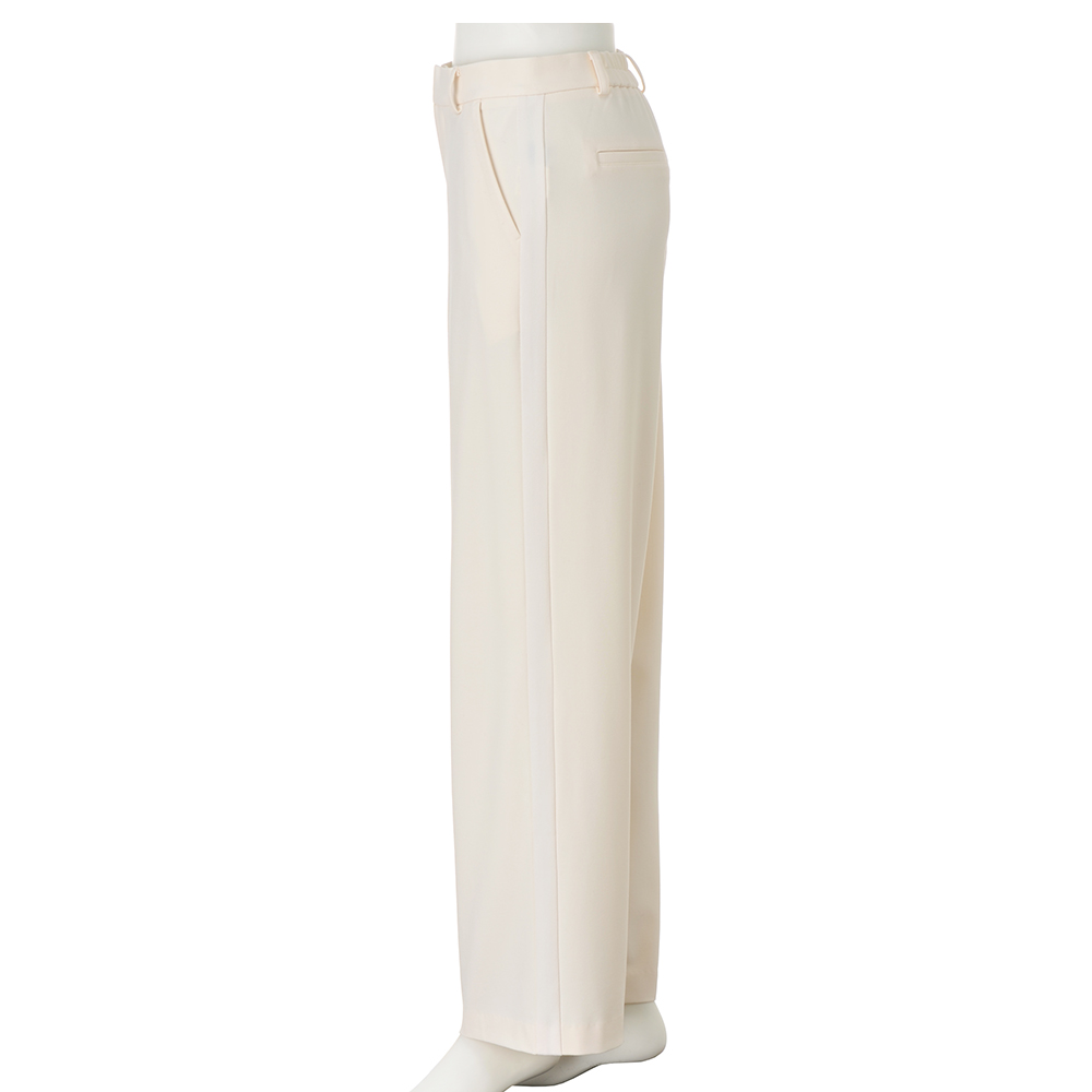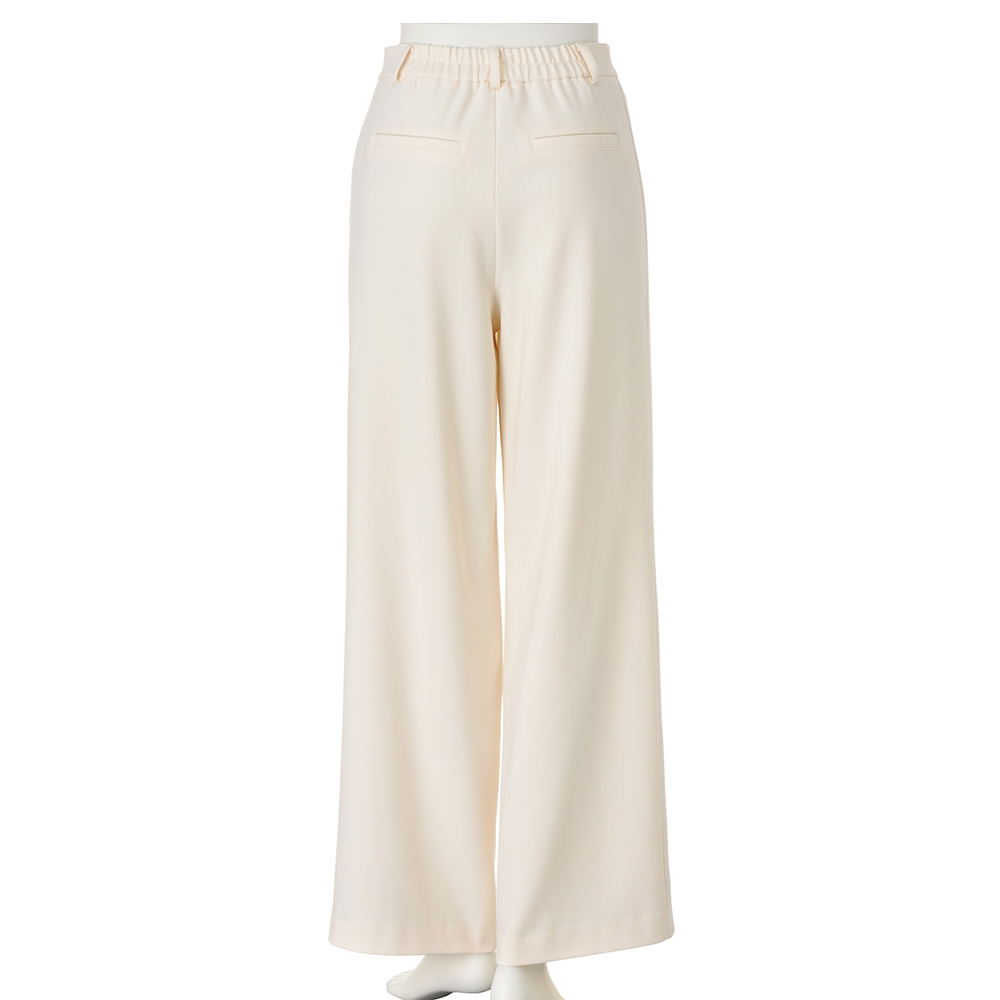 「ホワイト」を意識した、印象派スタイルダークな装いになりがちな冬は、明るさにフォーカスした着こなしが洗練のカギに。何気ない表情も輝いて見える、美麗効果の高いアイテムです。上品な軽快さをトーンで表現「東レ(株)」の機能素材ソフトサーモ(R)を使用した一着。身体の湿気を熱に換える特殊な裏起毛素材が、暖かなはき心地を実現します。デザインは足のラインが響きにくい優雅なセミワイド。美脚効果を生む、サイドラインの切り替えをあしらって。スタイリッシュなのに暖かさがまるで違うから、この時期の定番にぜひ。≫ POINTループ付ベルトは後ろがゴムギャザーで快適なフィット感。オフホワイトの切り替えサイドラインが上品な印象。