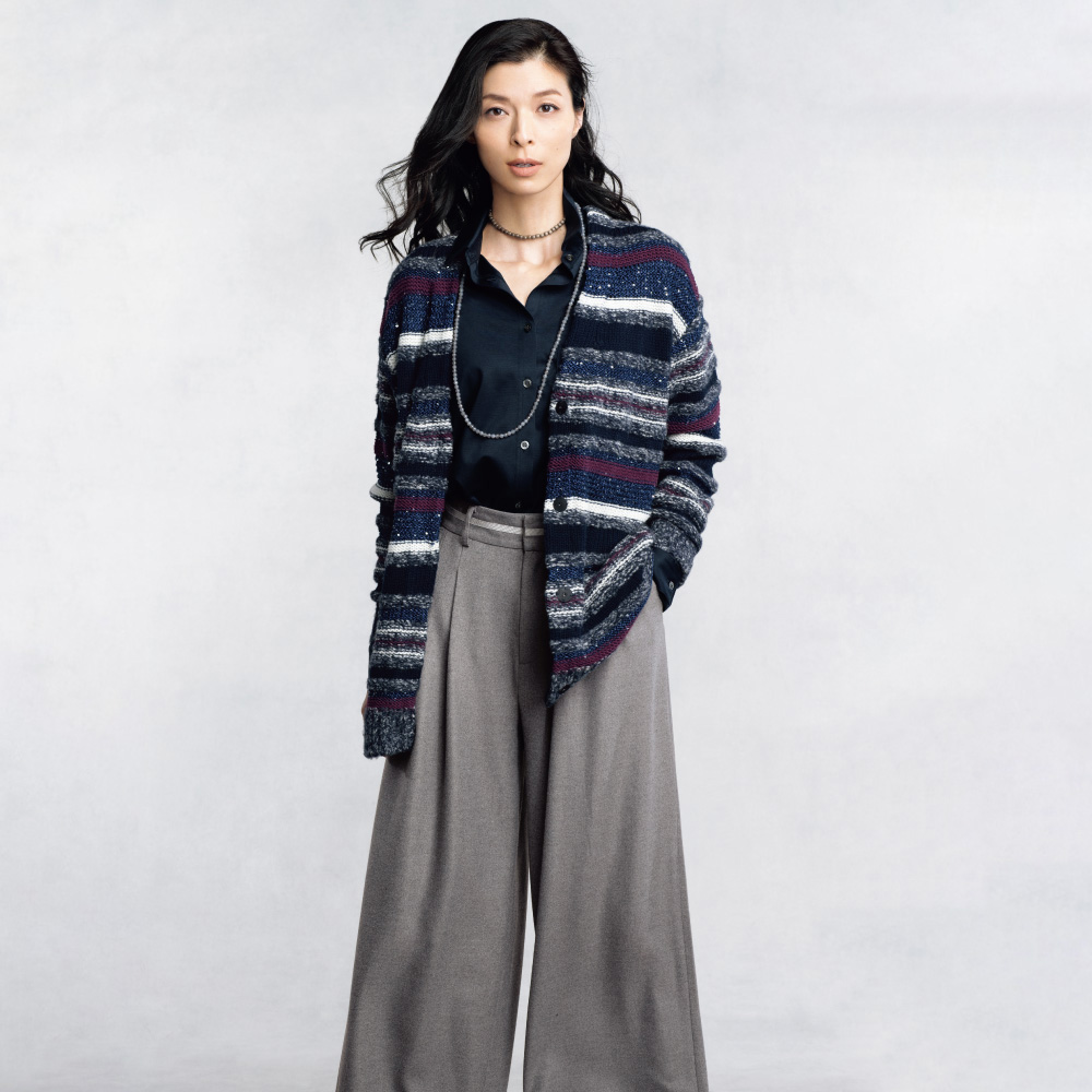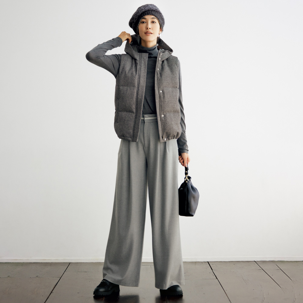 冬素材で着映えも着心地もアップデートマニッシュなワイドパンツ。両面微起毛素材で、はいた瞬間から暖かさに包まれて。