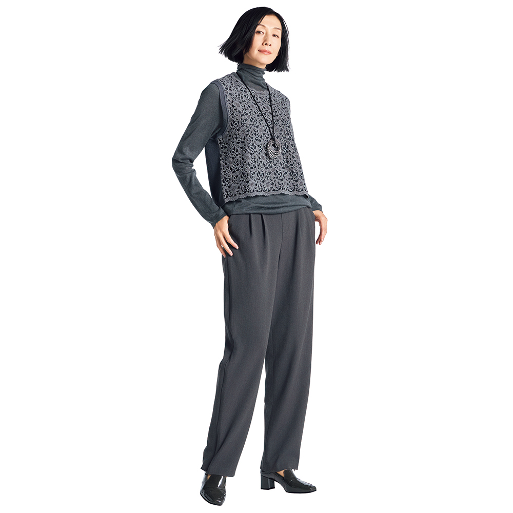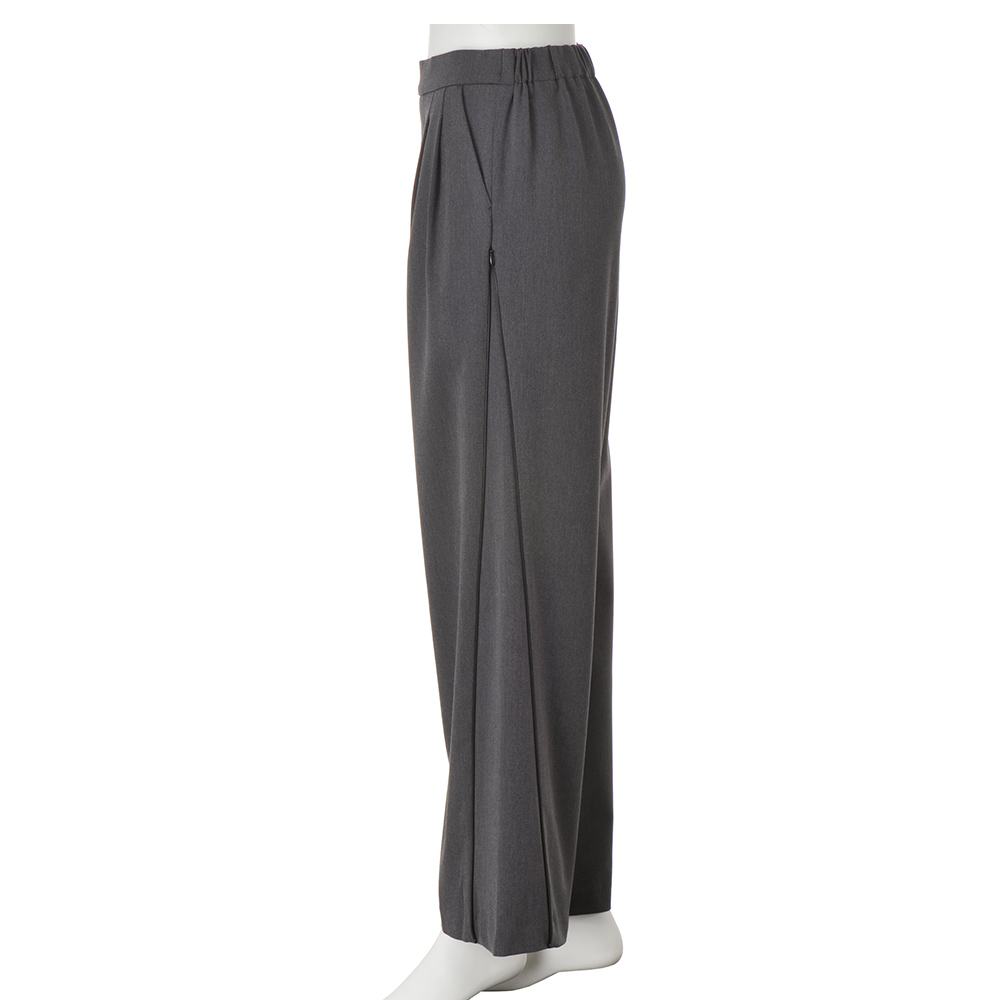 MUST BUY ITEMS着映えも着心地も叶う、春ボトムセレクション今季らしいシルエットと上質素材で仕立てた、春の装いを彩るボトムス。この機会に、お得な旬の一本を手に入れて。2つのシルエットが思いのままファスナーを開ければワイド、閉じればテーパード。これほどシルエットをがらりと変えられるパンツはそうはありません。両脇にあしらわれた裾までのコンシールファスナーを開閉するだけで、無理なく自然にシルエットチェンジ。しなやかなウールライクサキソニー素材が、内側に折り込まれた生地をすっきり収め、裏起毛仕様で肌あたりも暖か。ウエストは総ゴム仕様のプルオンタイプながら、フラットな前ウエストとステッチが本格的な前開きを思わせる佇まい。ウエストのさりげないツータックが腰周りに程良いゆとりを生み、上品な印象に仕上げています。