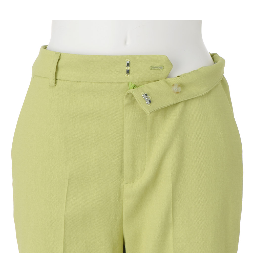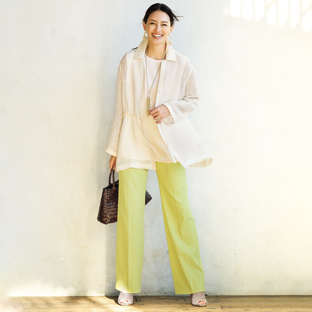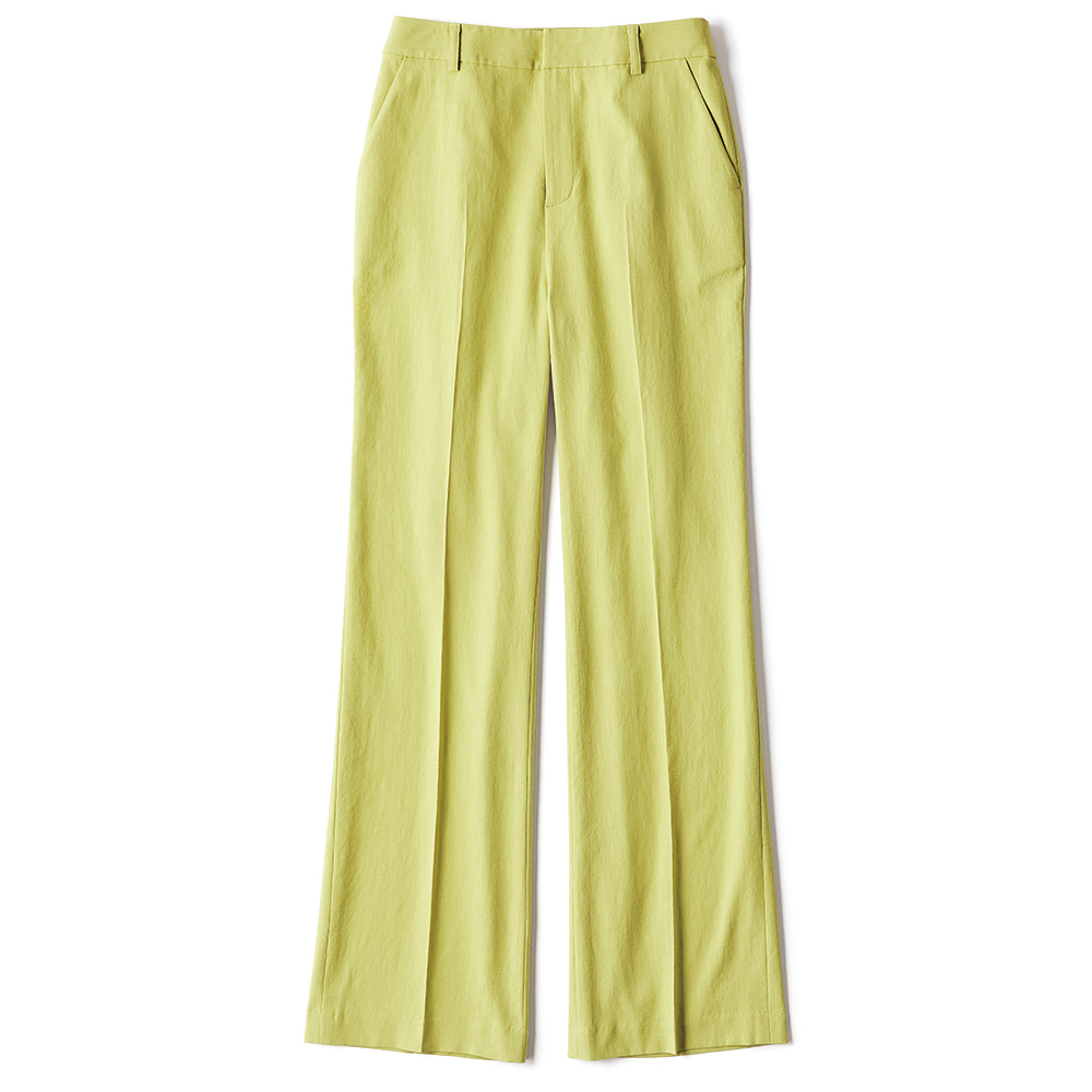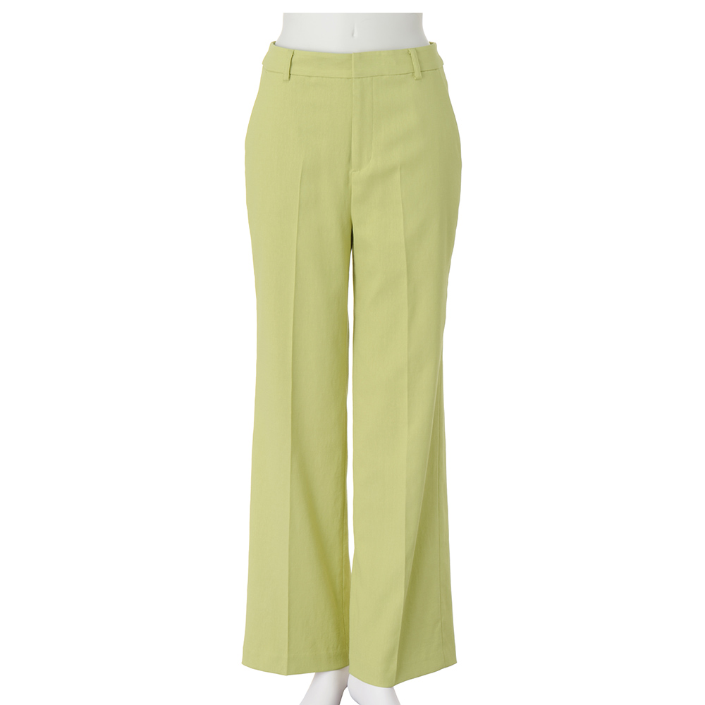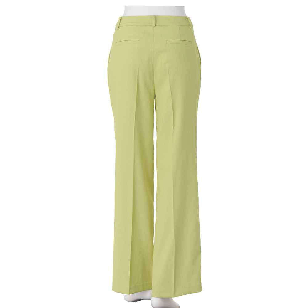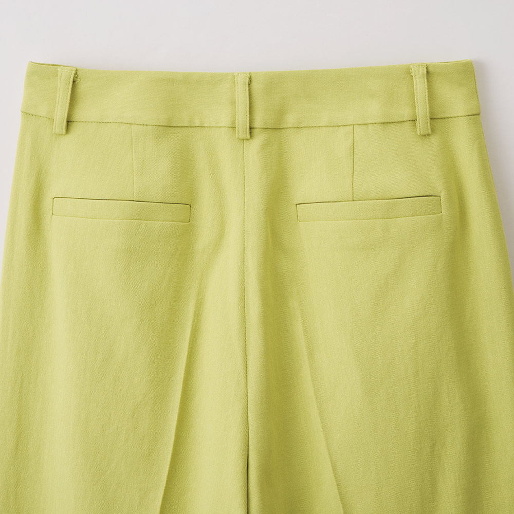 Botanical Chicトレンド継続のグリーンと、延長線上のアーシーな色合い。みずみずしさが香る“ボタニカル”なスパイスがフレッシュなときめきを運んできます。“爽やかさ”という引力を身に着けて差し色にぴったりなピスタチオグリーン。彩度を抑えた色味は色々なコーディネートにも合わせやすく、取り入れやすいカラー。素材は見た目も着心地も爽やかなコットンリネン混。センタープレスを入れたセミワイドが、身体を拾い過ぎることなく美脚を演出します。≫ POINTコットンリネン混のナチュラルな風合いのオックス生地。センタープレス入りできちんと感をプラス。