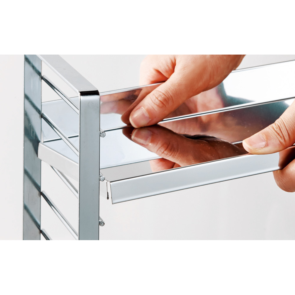 熱いお鍋も置けて、水や汚れにも強いステンレス棚板。