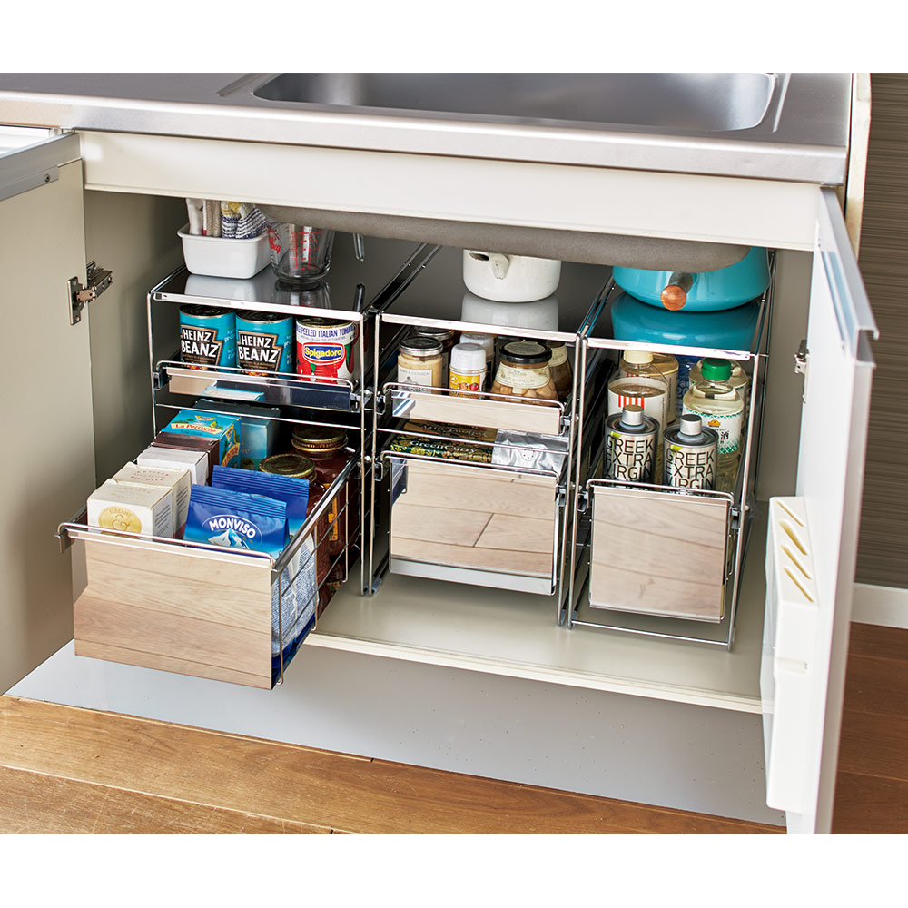 奥のものまで引き出しやすい、国産のシンク下ラックです。