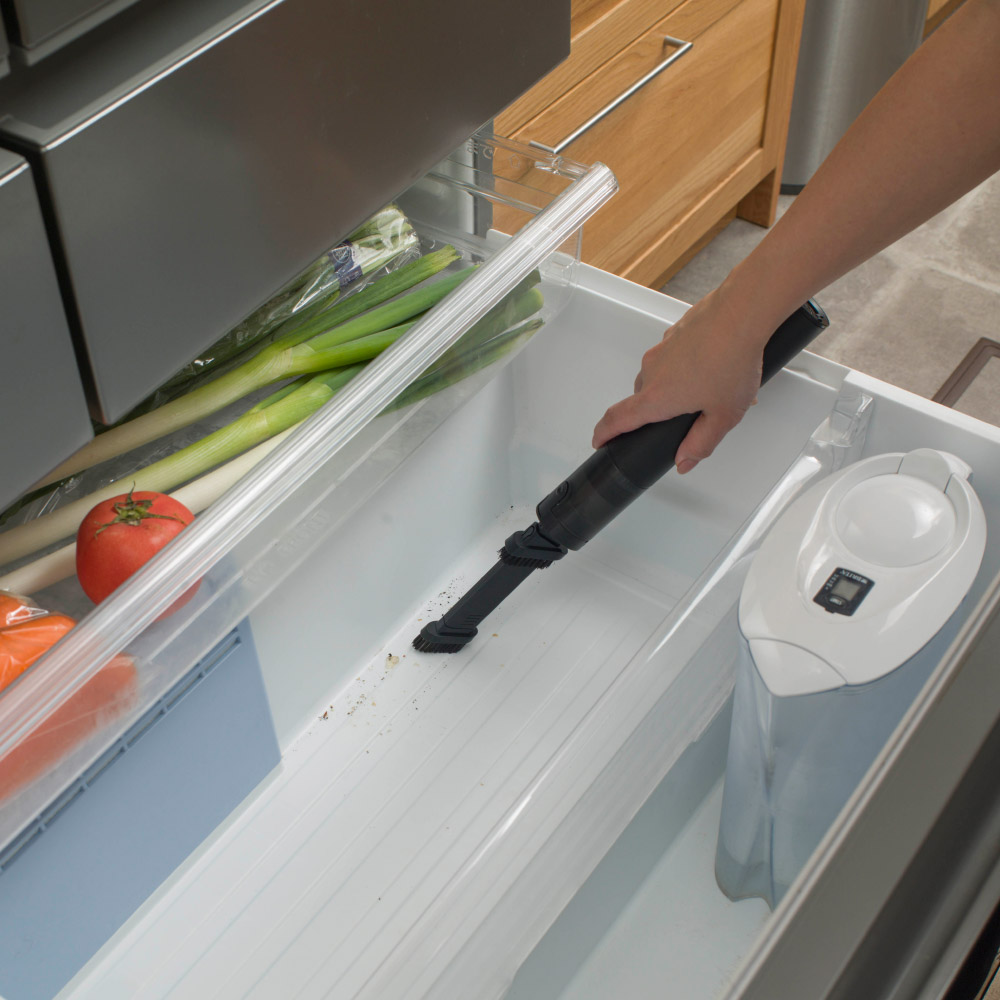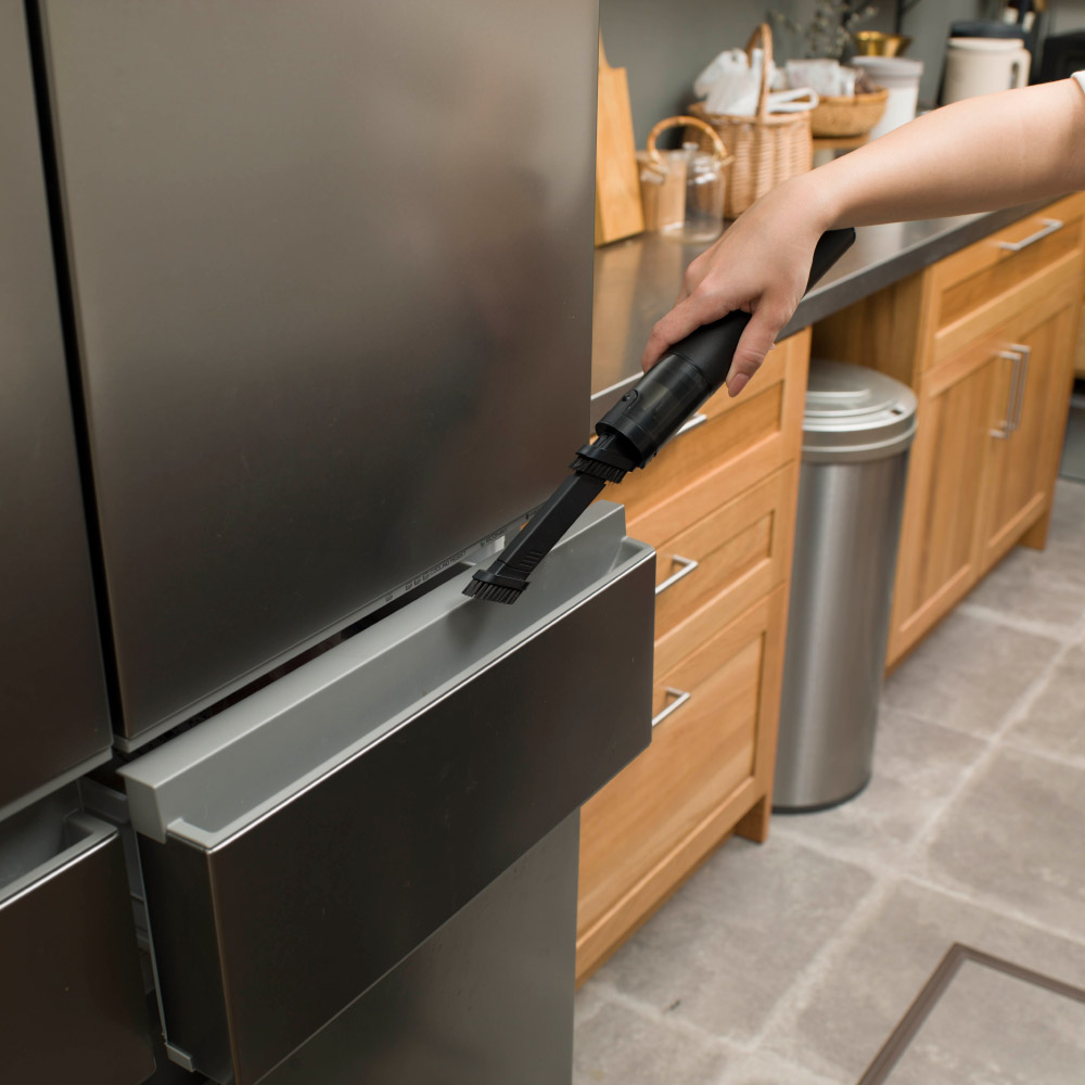 冷蔵庫内や、豆の粉末が散りやすいコーヒーメーカー周辺など、重い掃除機を持ってくるのが面倒な場所で活躍します。